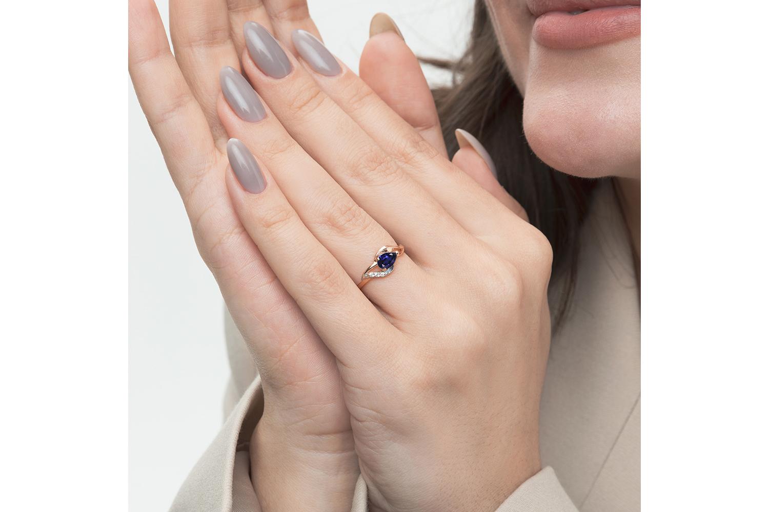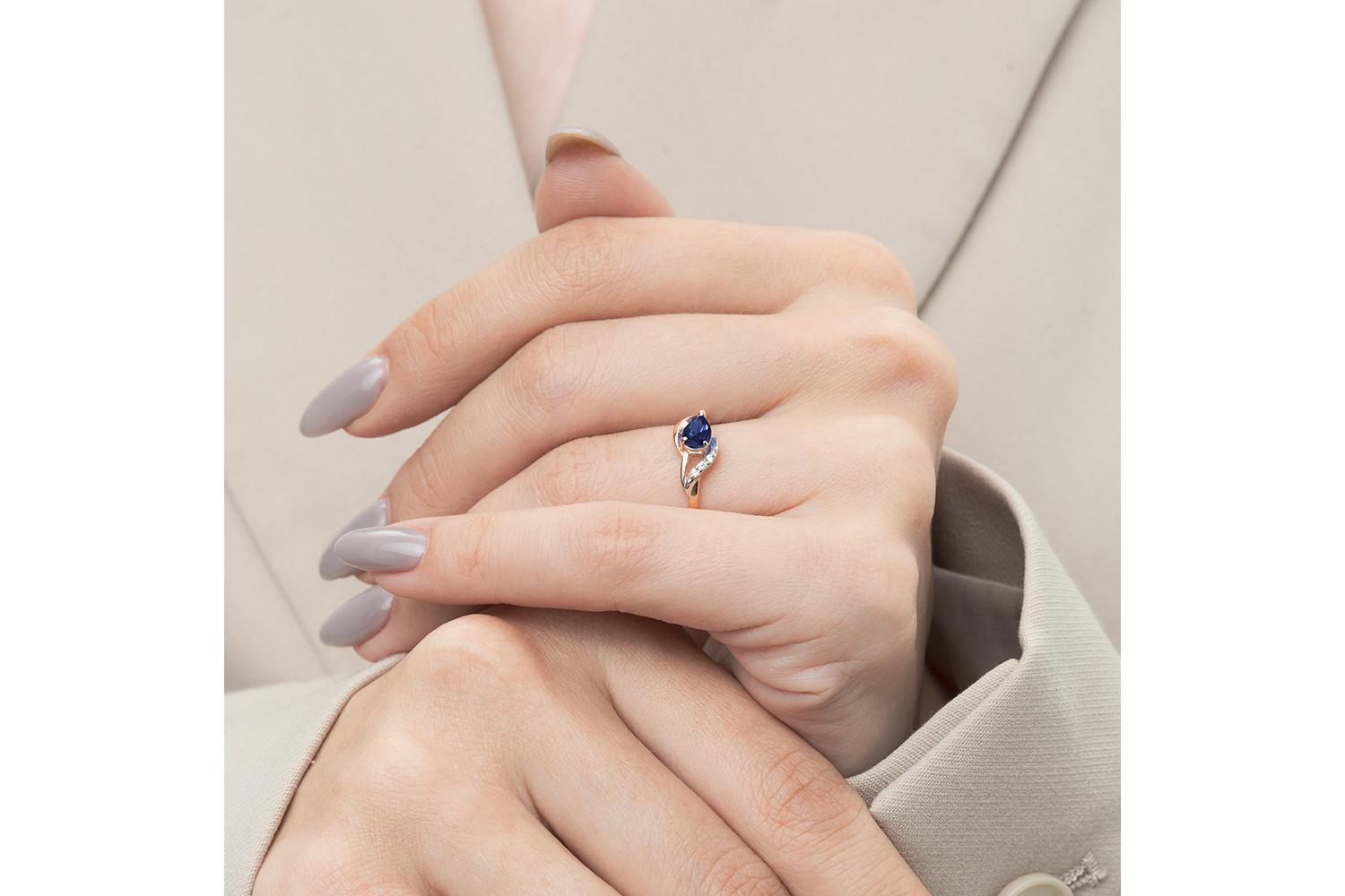 Мастера компании NEWGOLD, приложив всё свое мастерство и искусство, создали для Вас на нашем собственном производстве Кольцо из красного золота с сапфиром и 3 бриллиантами.