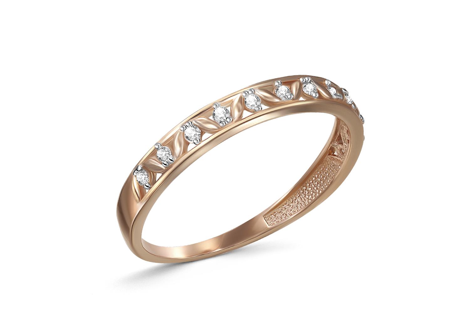 Мастера компании NEWGOLD, приложив всё свое мастерство и искусство, создали для Вас на нашем собственном производстве Кольцо Дорожка из красного золота с 12 фианитами.