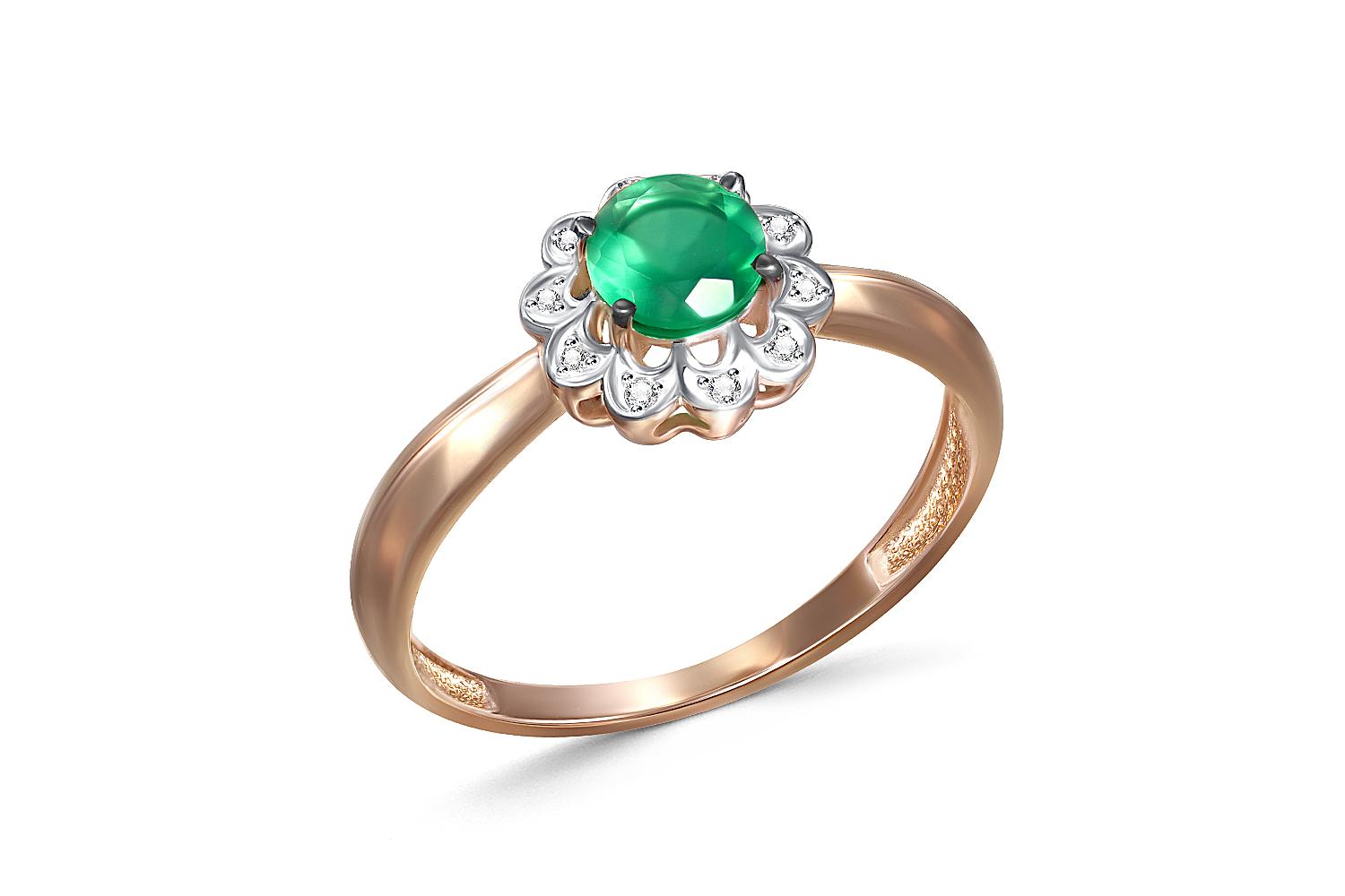 Мастера компании NEWGOLD, приложив всё свое мастерство и искусство, создали для Вас на нашем собственном производстве Кольцо Цветок из красного золота с агатом и 10 фианитами.