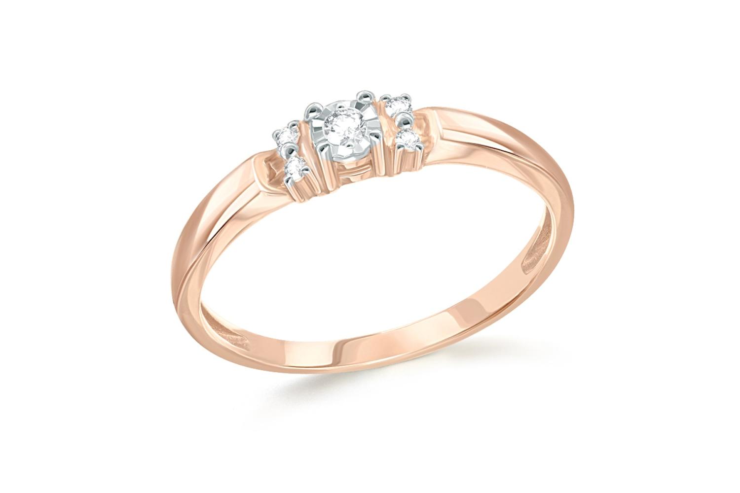Коллекция: Simple. Металл: Золото, цвет: Красный/Белый , проба: 585. Вставки: Бриллиант, количество 4 шт. , огранка Кр-57, размер 1,25 мм, цвет 4, чистота 5 ; Бриллиант, количество 1 шт.