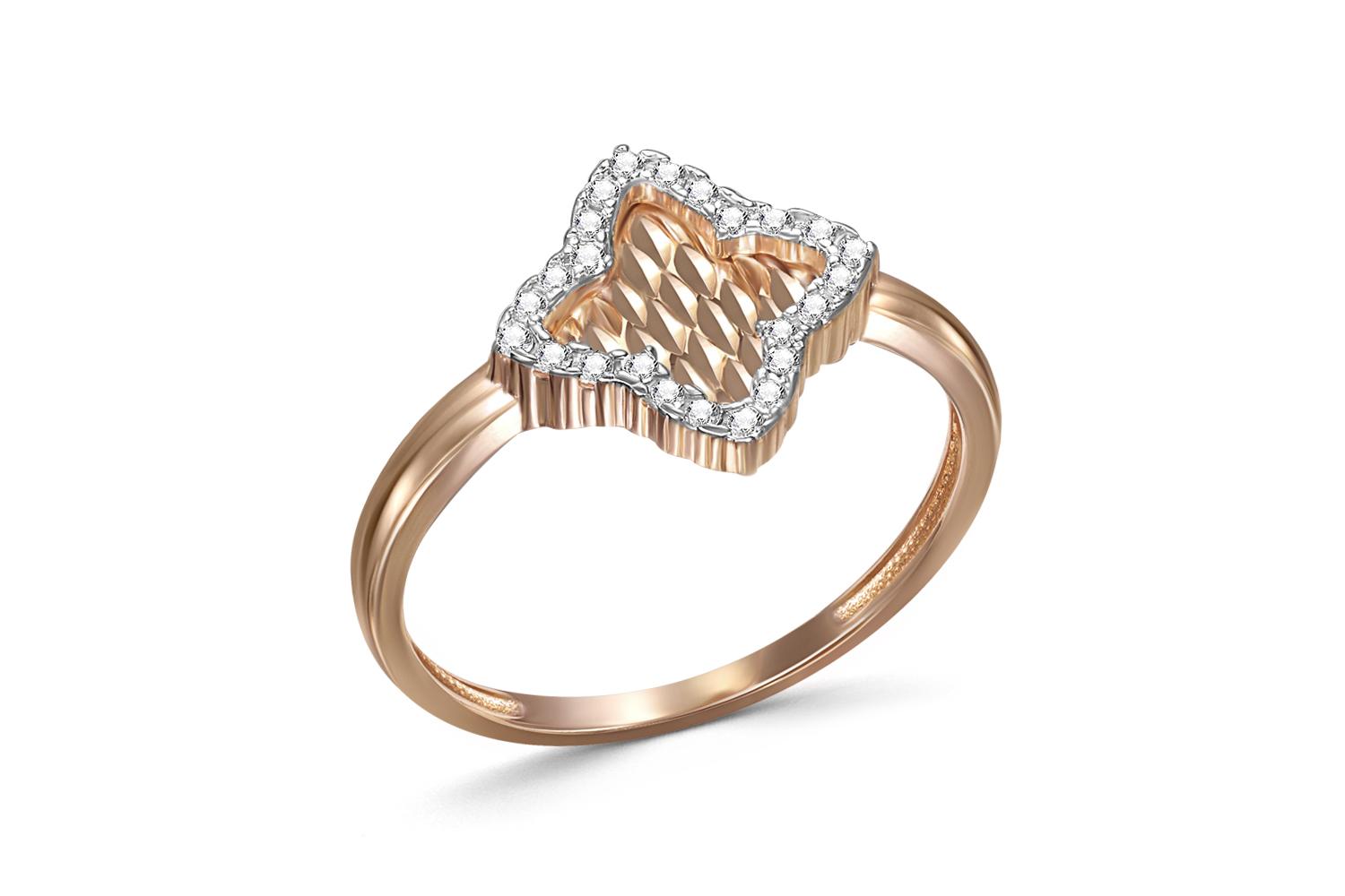 Мастера компании NEWGOLD, приложив всё свое мастерство и искусство, создали для Вас на нашем собственном производстве Кольцо Клевер из красного золота с 24 фианитами.