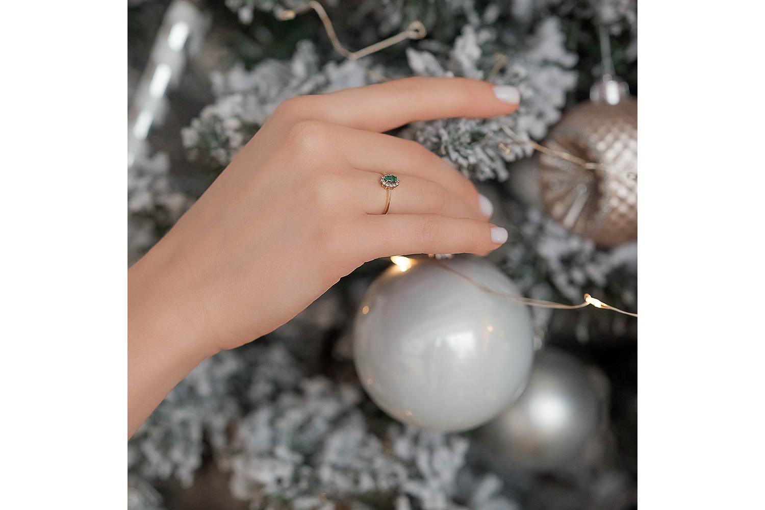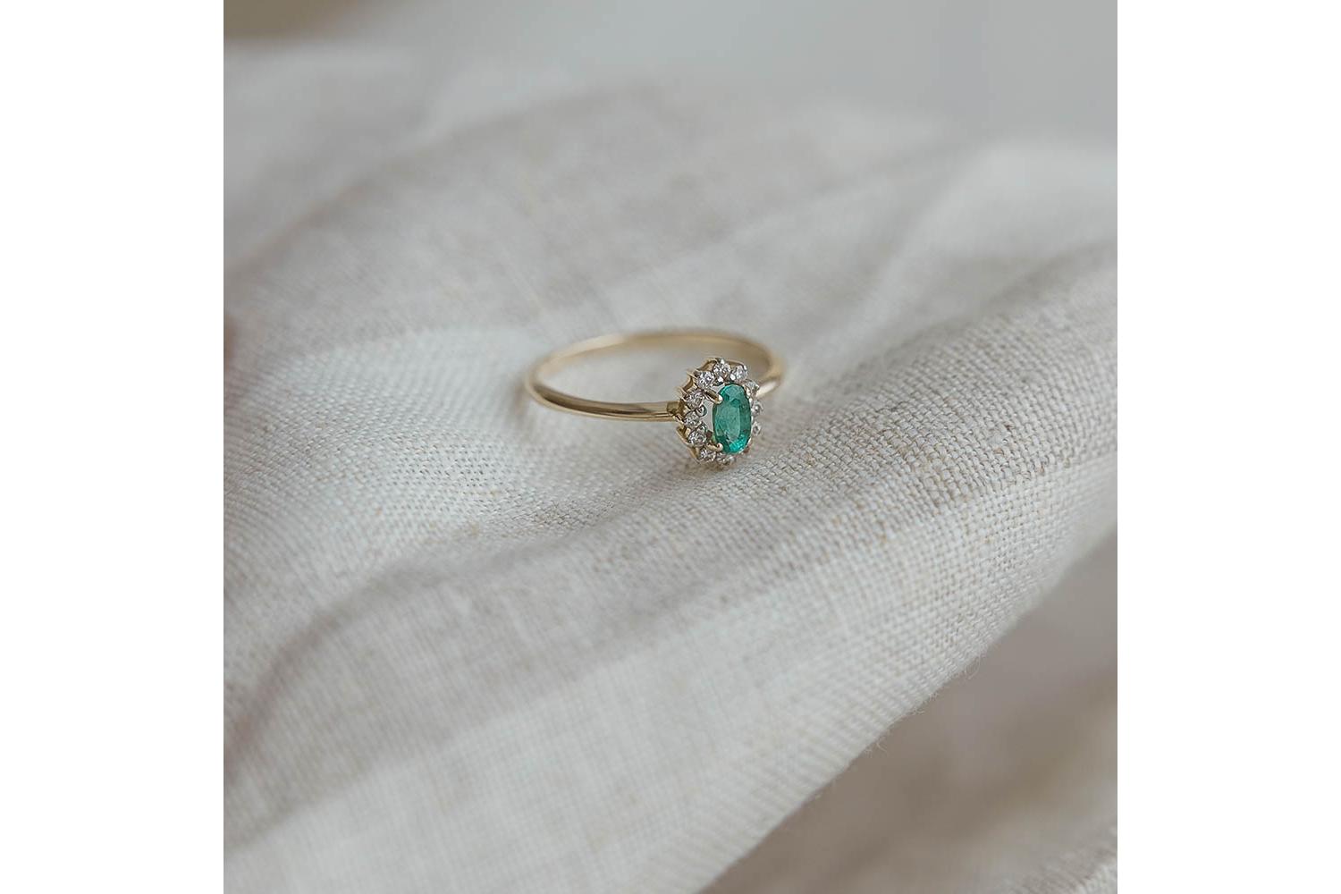 Мастера компании NEWGOLD, приложив всё свое мастерство и искусство, создали для Вас на нашем собственном производстве Кольцо из жёлтого золота с изумрудом и 12 фианитами.