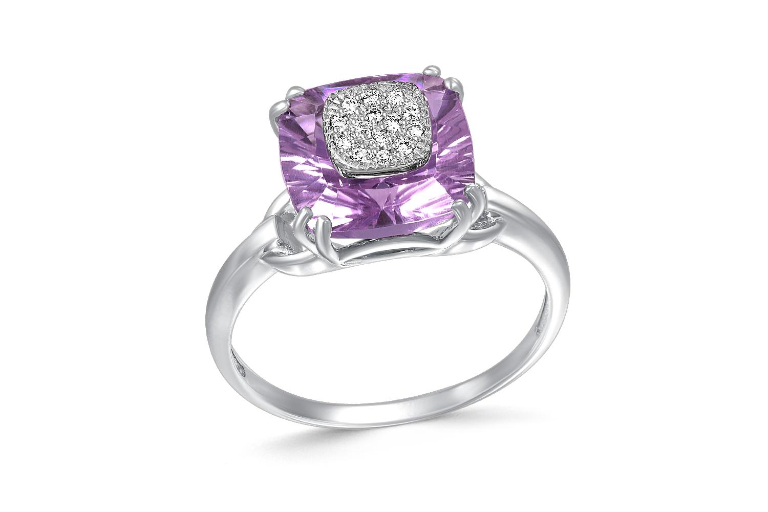 Мастера компании NEWGOLD, приложив всё свое мастерство и искусство, создали для Вас на нашем собственном производстве Кольцо из белого золота с аметистом и 14 бриллиантами.