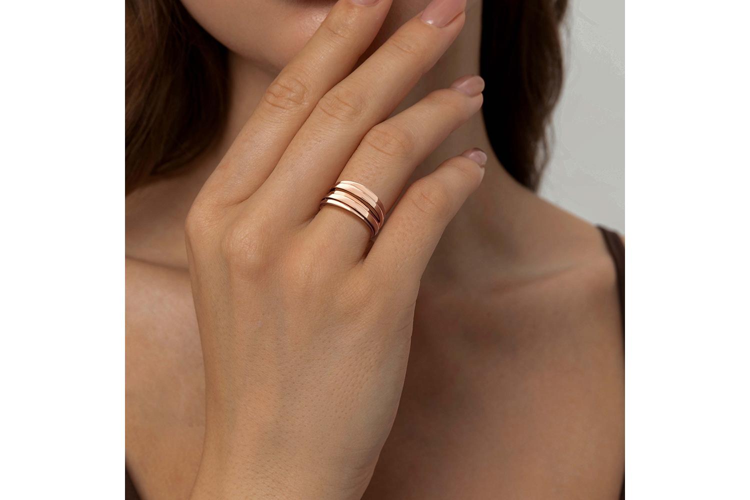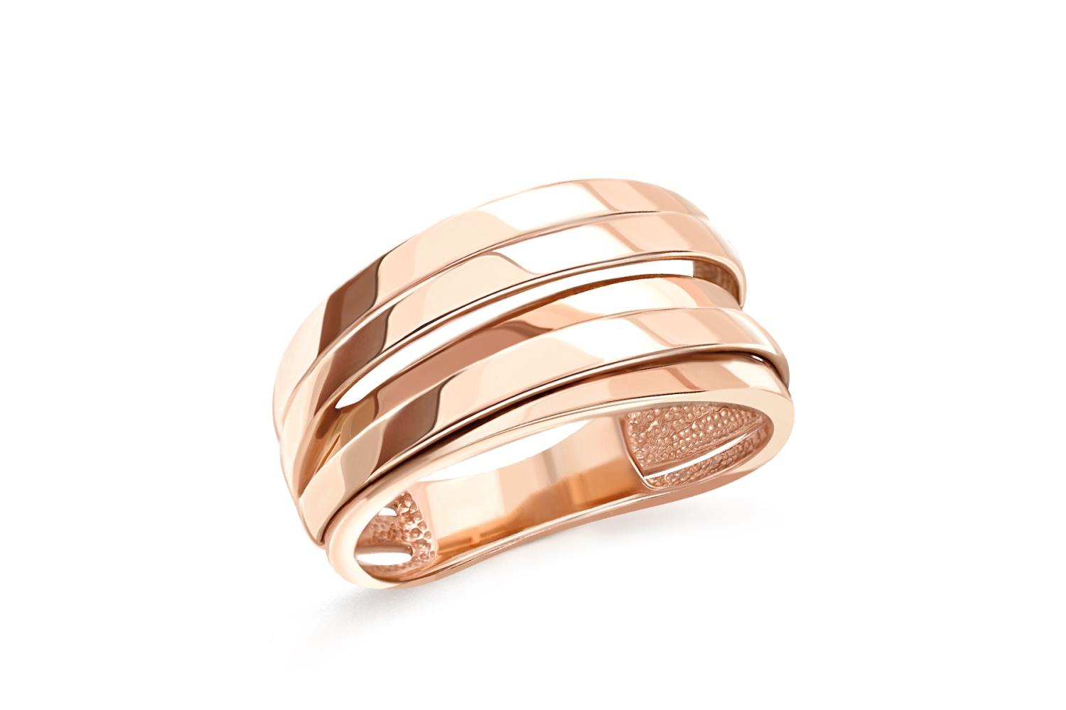 Дизайн кольца отличается оригинальностью - несколько параллельных линий изящно изгибаются, образуя объемную композицию.