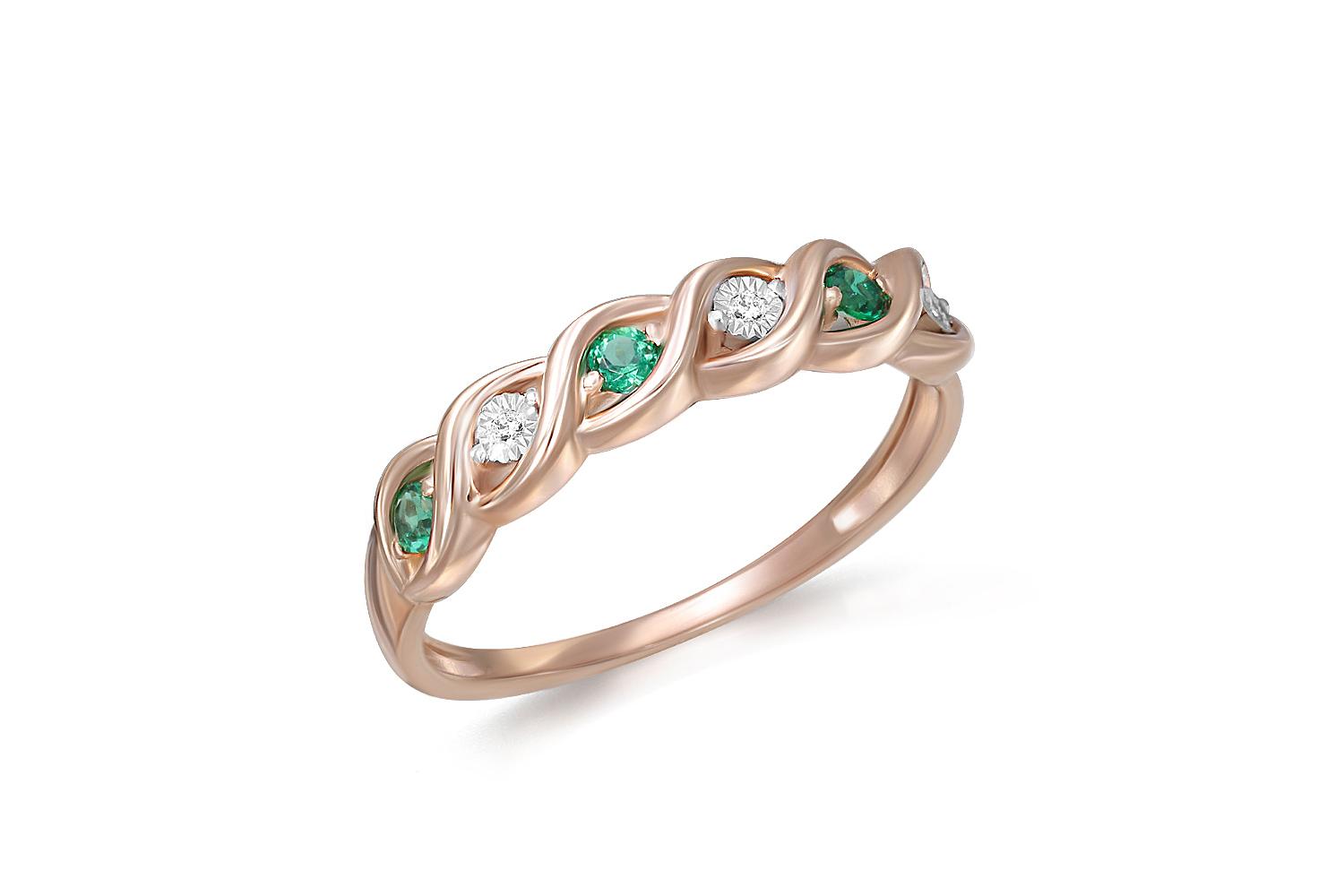 Мастера компании NEWGOLD, приложив всё свое мастерство и искусство, создали для Вас на нашем собственном производстве Кольцо Дорожка из красного золота с 3 изумрудами и 3 бриллиантами.