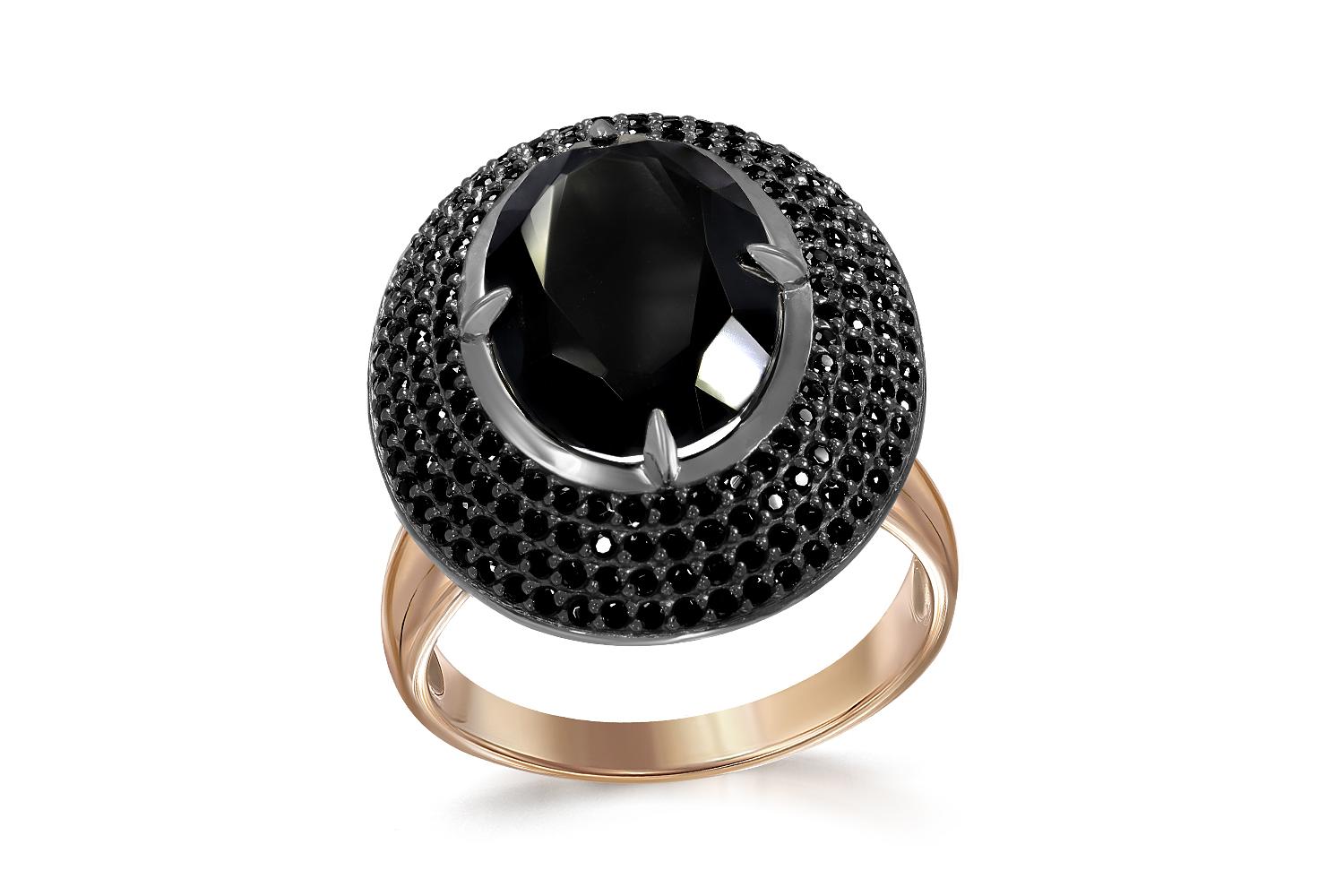 Агат чёрный, количество 1 шт., огранка овал, размер 14ˣ10 ; Фианит чёрный, количество 184 шт., огранка круг, размер 1 мм