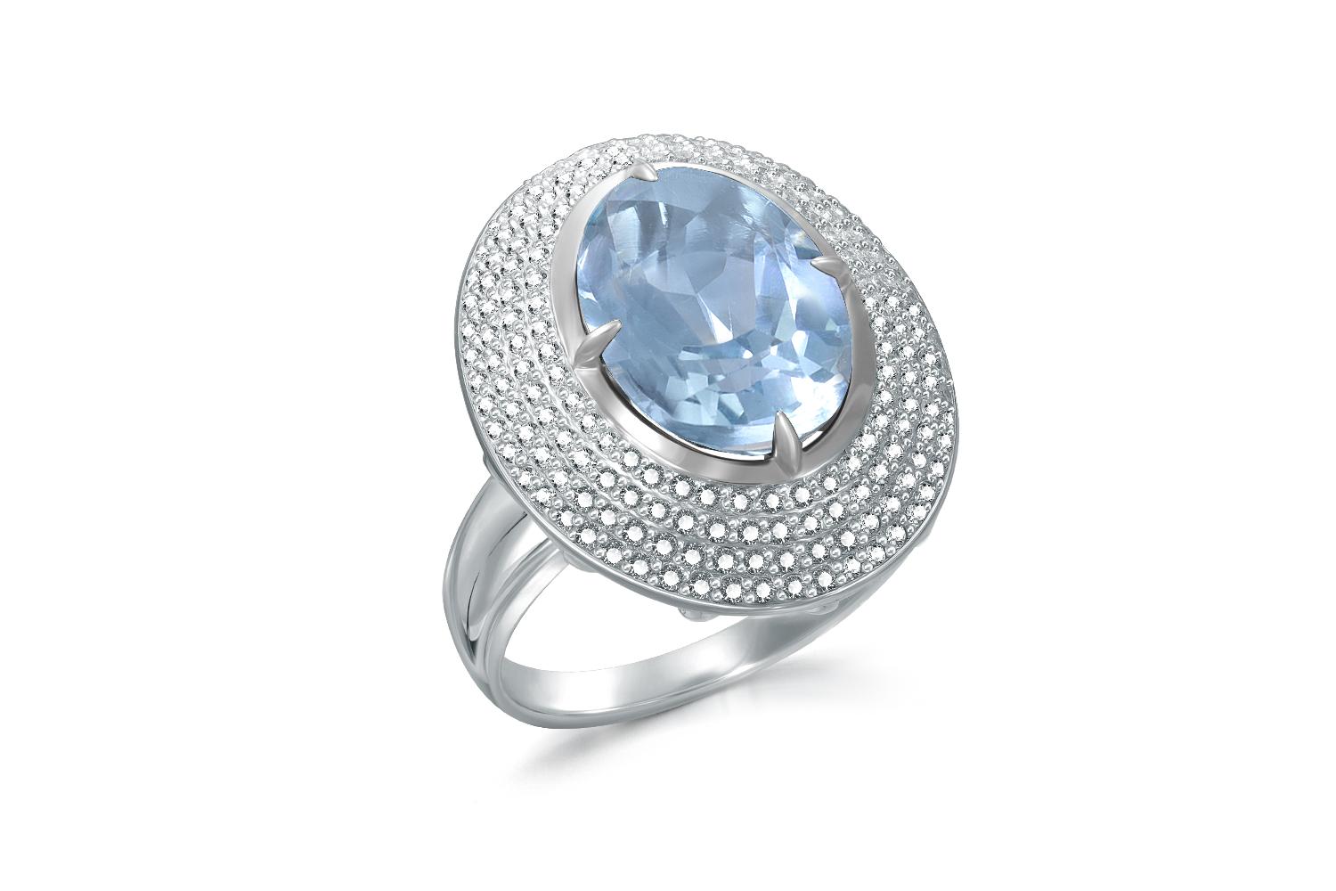 Мастера компании NEWGOLD, приложив всё свое мастерство и искусство, создали для Вас на нашем собственном производстве Кольцо из белого золота с топазом sky и 184 фианитами.