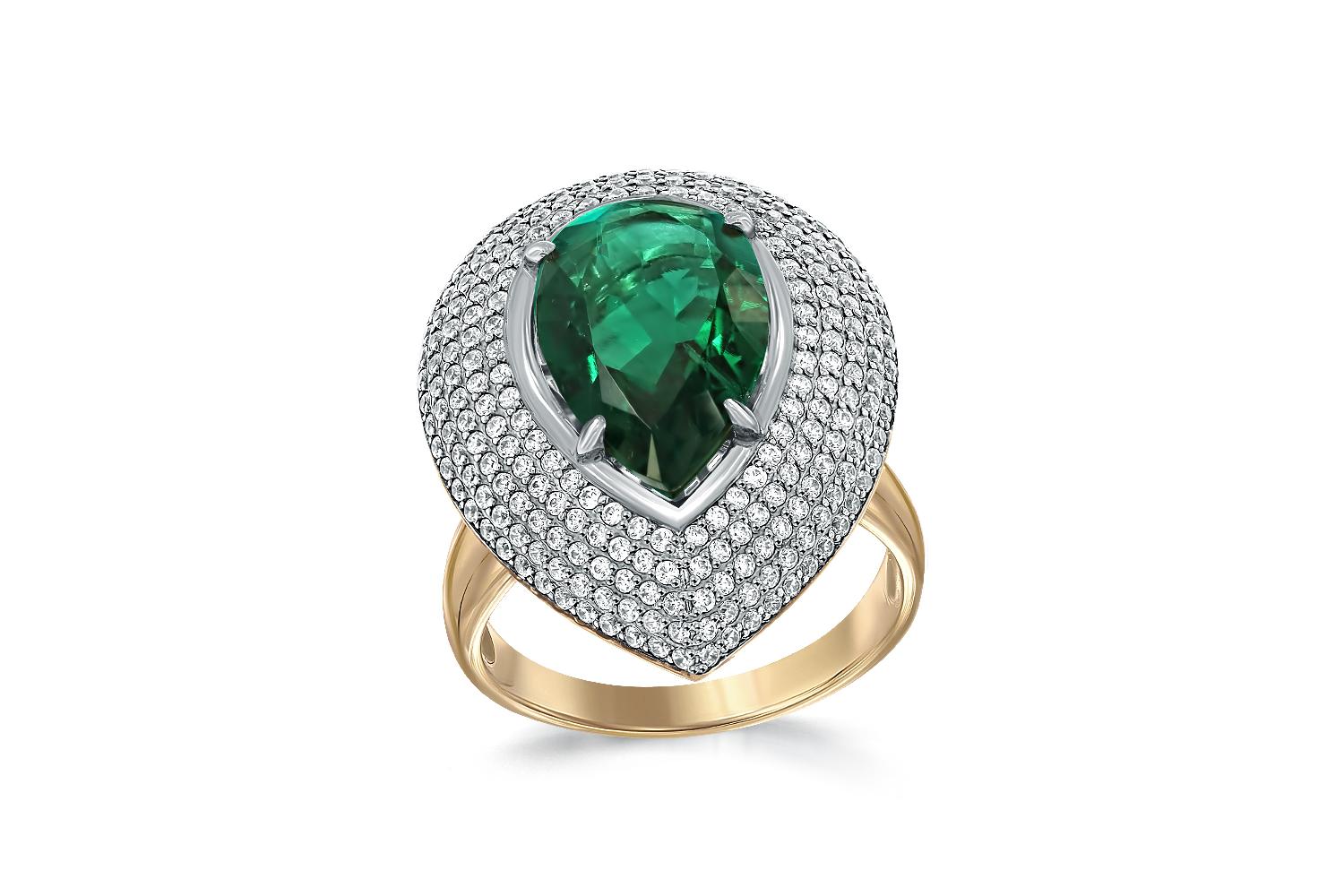 Мастера компании NEWGOLD, приложив всё свое мастерство и искусство, создали для Вас на нашем собственном производстве Кольцо из жёлтого золота с изумрудом и 246 фианитами.