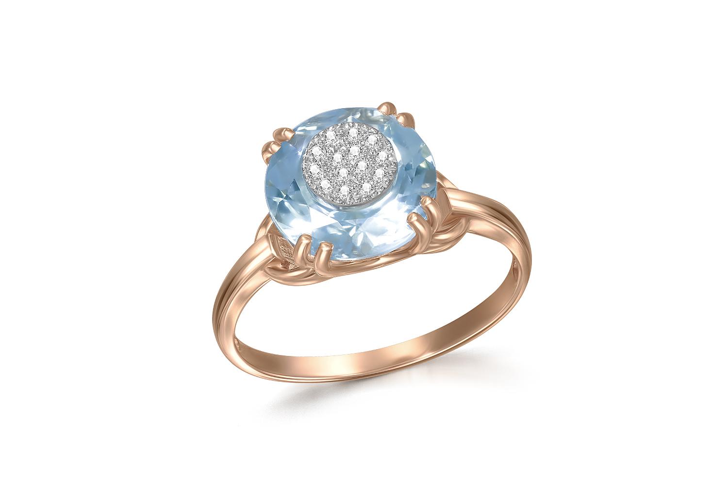 Мастера компании NEWGOLD, приложив всё свое мастерство и искусство, создали для Вас на нашем собственном производстве Кольцо из красного золота с топазом sky и 14 бриллиантами.