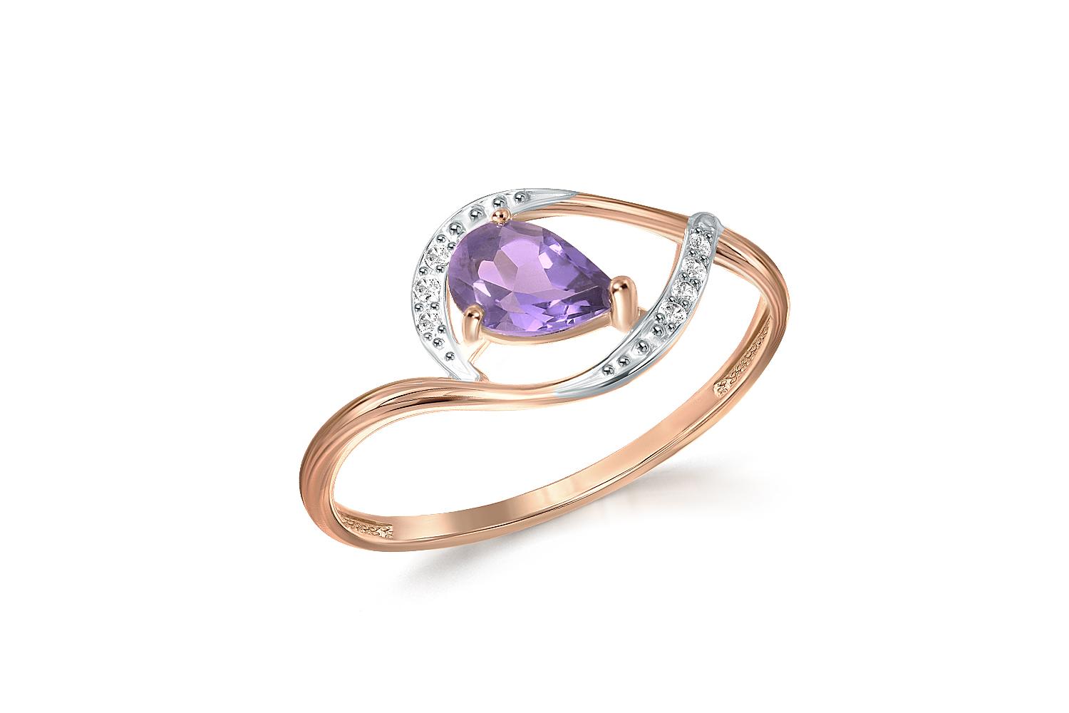 Закажите Кольцо из красного золота с аметистом и 7 фианитами с получением в Москве через курьерскую службу доставки напрямую с нашего производственного склада завода NEWGOLD!