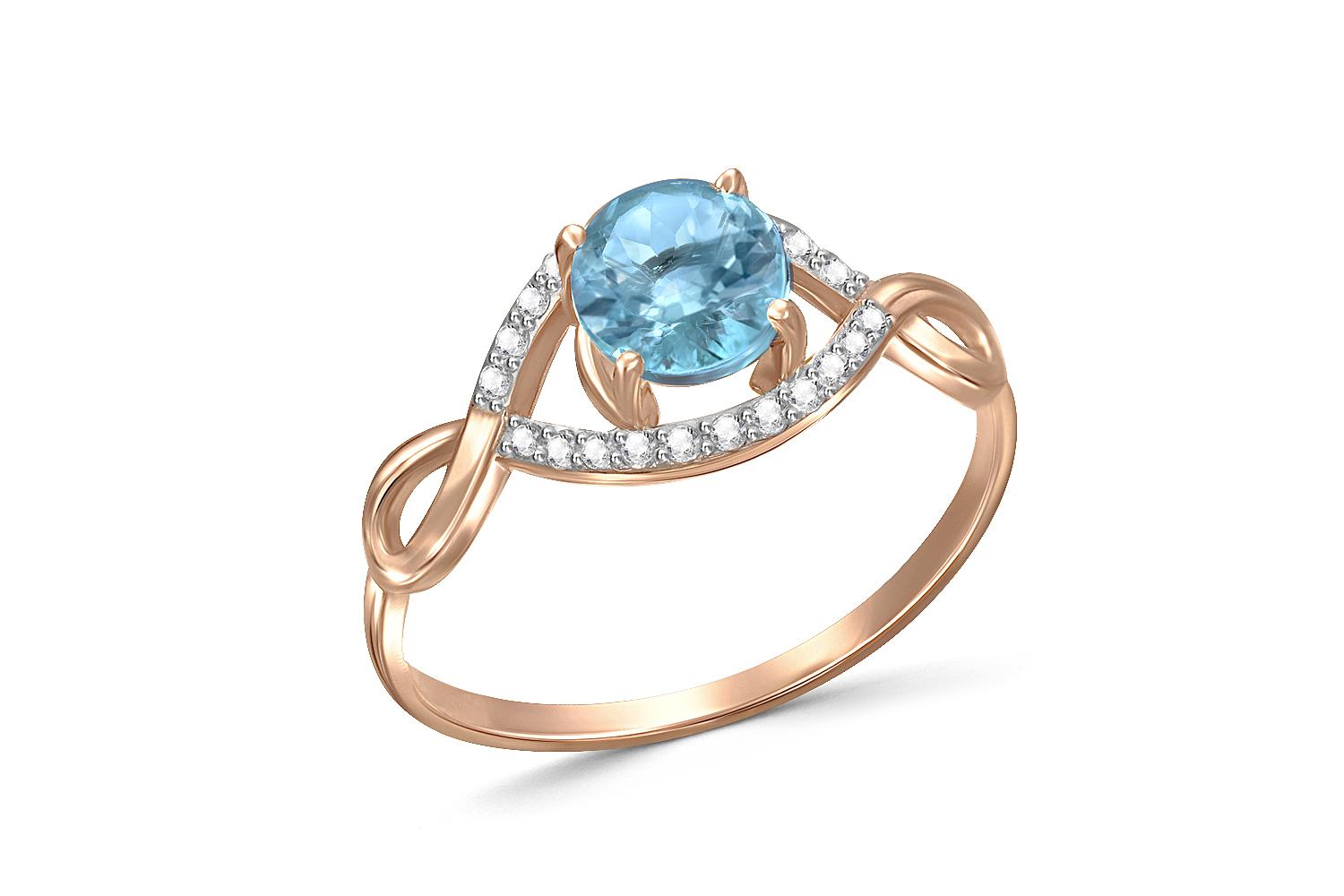 Закажите Кольцо из красного золота с топазом swiss и 22 фианитами с получением в Москве через курьерскую службу доставки напрямую с нашего производственного склада завода NEWGOLD!
