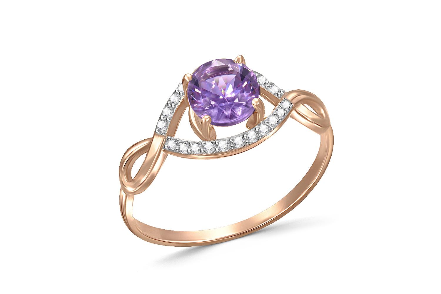 Закажите Кольцо из красного золота с аметистом и 22 фианитами с получением в Москве через курьерскую службу доставки напрямую с нашего производственного склада завода NEWGOLD!