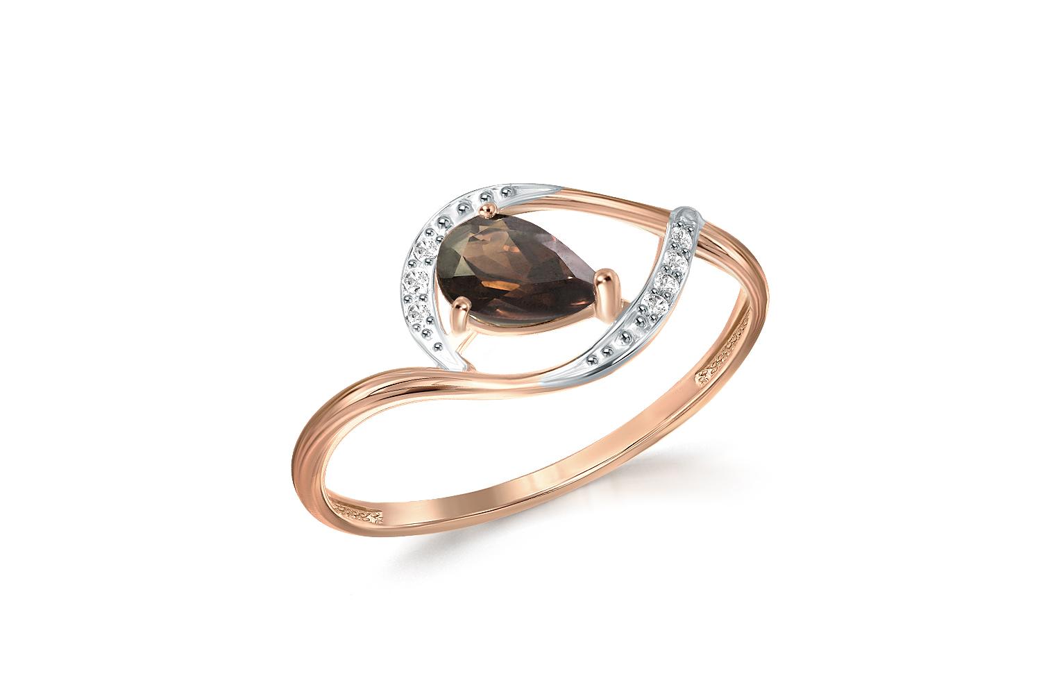 Закажите Кольцо из красного золота с раухтопазом и 7 фианитами с получением в Москве через курьерскую службу доставки напрямую с нашего производственного склада завода NEWGOLD!