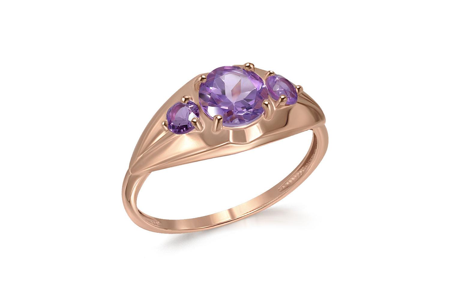 Мастера компании NEWGOLD, приложив всё свое мастерство и искусство, создали для Вас на нашем собственном производстве Кольцо из красного золота с 3 аметистами.