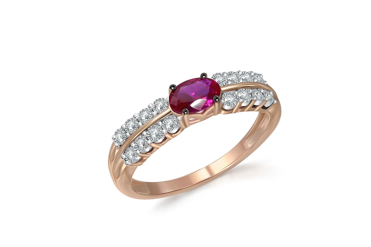 Мастера компании NEWGOLD, приложив всё свое мастерство и искусство, создали для Вас на нашем собственном производстве Кольцо из красного золота с корундом и 16 фианитами.