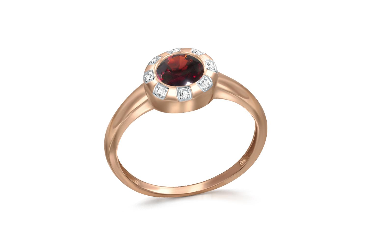 Закажите Кольцо из красного золота с гранатом и 8 фианитами с получением в Москве через курьерскую службу доставки напрямую с нашего производственного склада завода NEWGOLD!