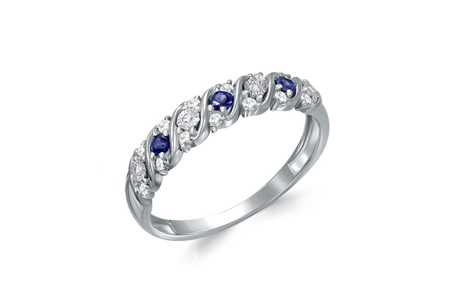 Сапфир натуральный, количество 3 шт., огранка круг, размер 2 мм, цвет 2, чистота 2 ; Бриллиант, количество 14 шт., огранка Кр-17, размер 1,25 мм, цвет 2, чистота 2 ; Бриллиант, количество 4 шт., огранка Кр-17, размер 1 мм, цвет 2, чистота 2