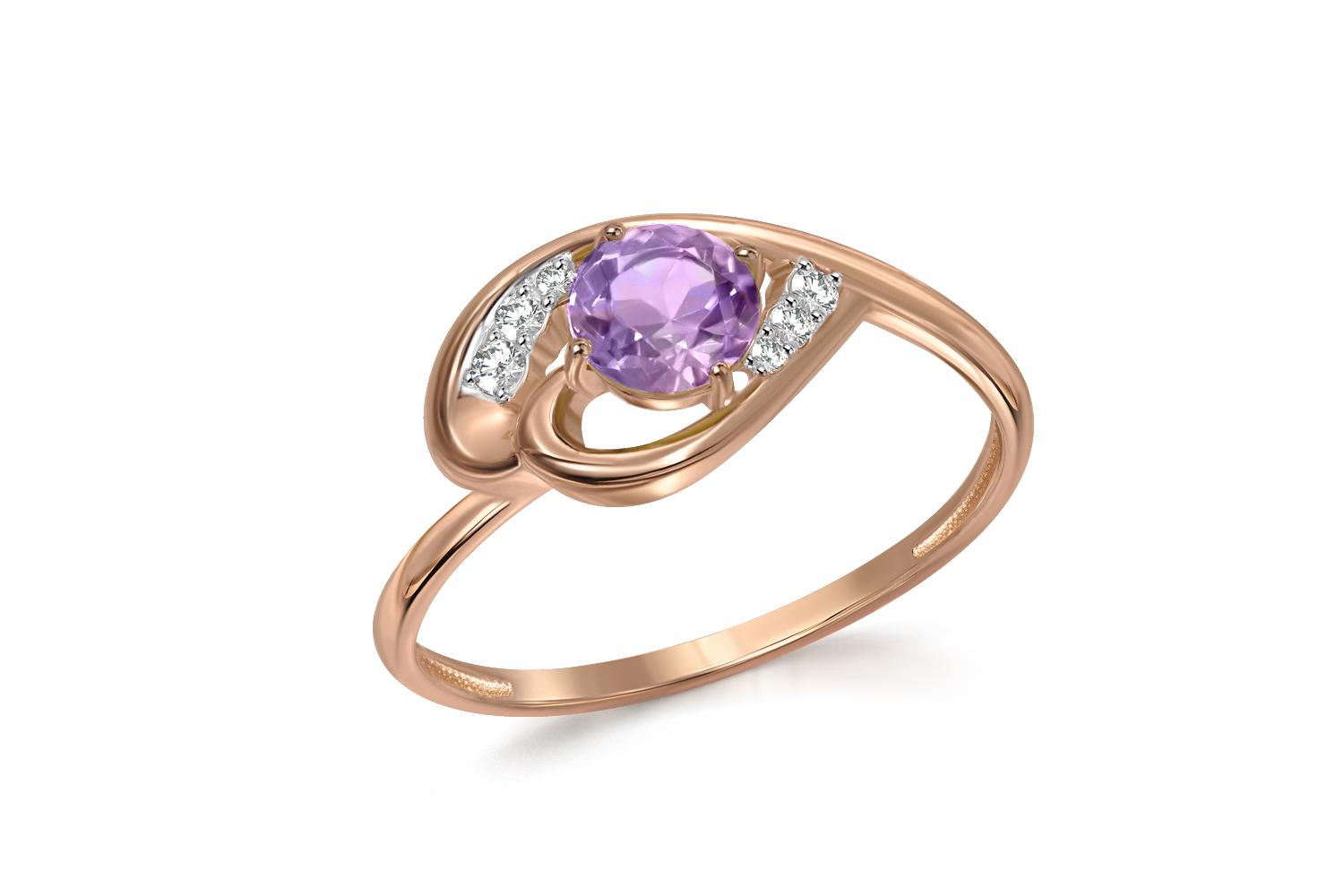 Мастера компании NEWGOLD, приложив всё свое мастерство и искусство, создали для Вас на нашем собственном производстве Кольцо из красного золота с аметистом и 6 фианитами.