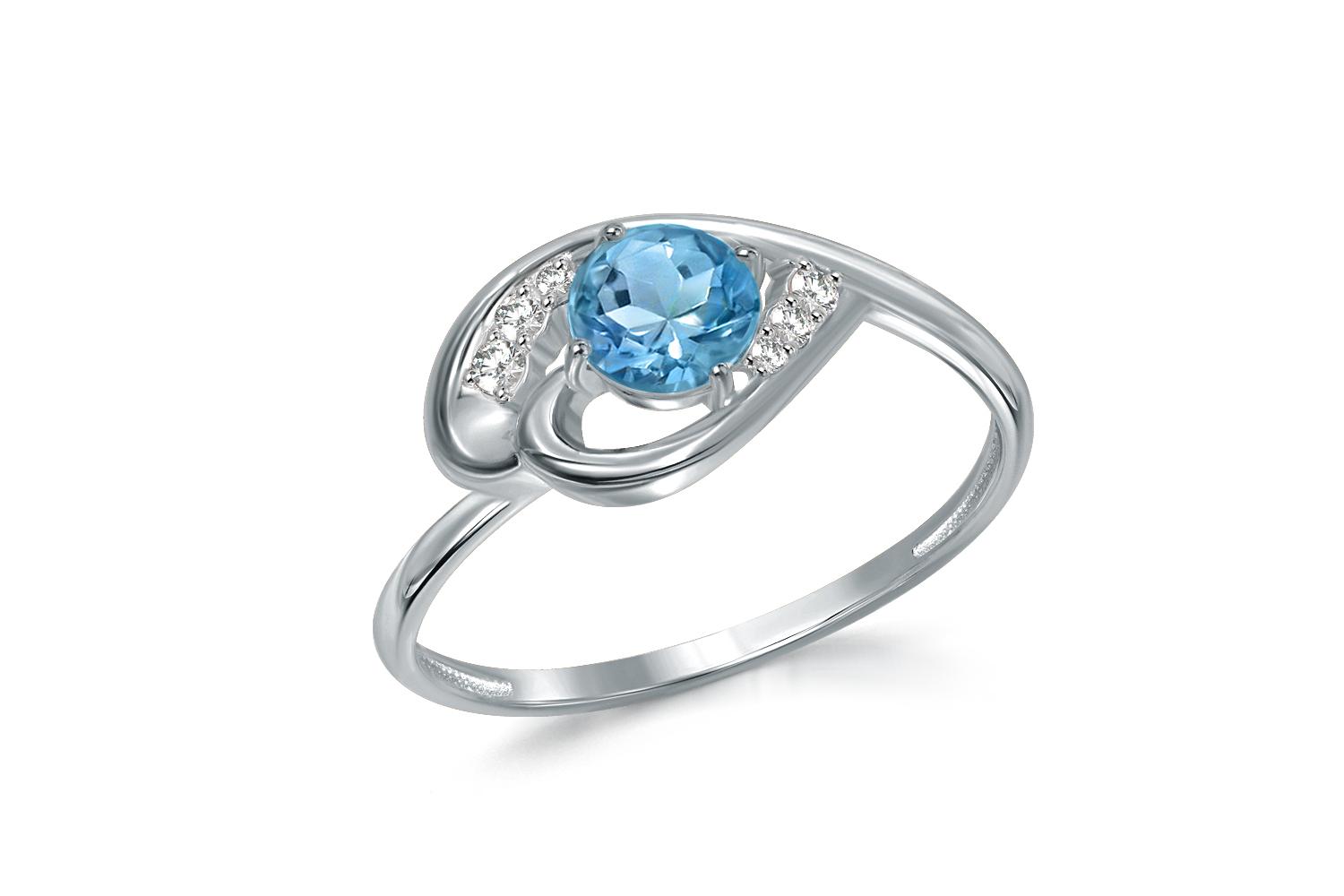 Мастера компании NEWGOLD, приложив всё свое мастерство и искусство, создали для Вас на нашем собственном производстве Кольцо из белого золота с топазом swiss и 6 фианитами.