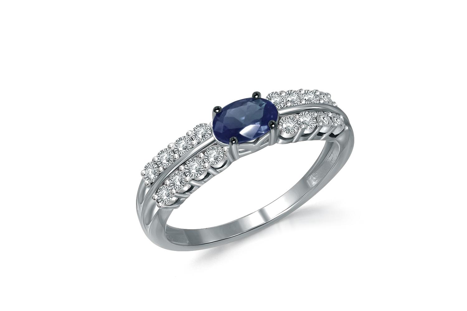 Корунд сапфир синт, количество 1 шт., огранка овал, размер 6ˣ4 ; Бриллиант, количество 16 шт., огранка Кр-17, размер 1 мм, цвет 2, чистота 2