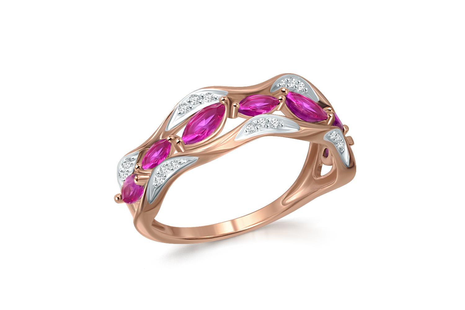 Мастера компании NEWGOLD, приложив всё свое мастерство и искусство, создали для Вас на нашем собственном производстве Кольцо из красного золота с 7 корундами и 21 бриллиантами.