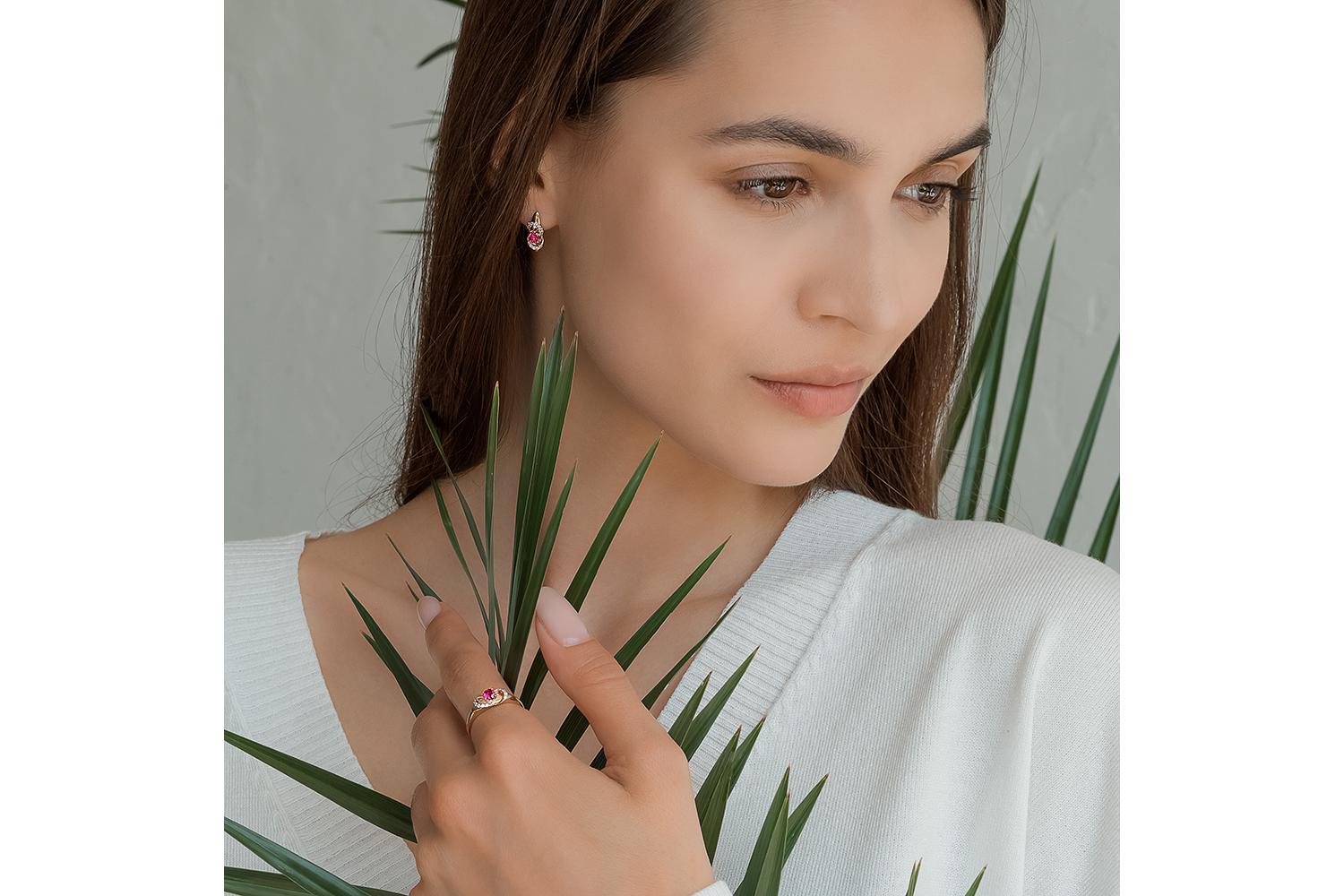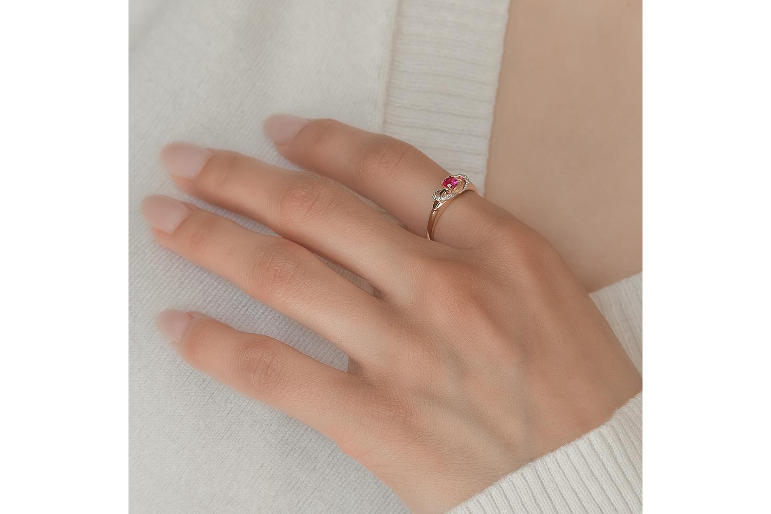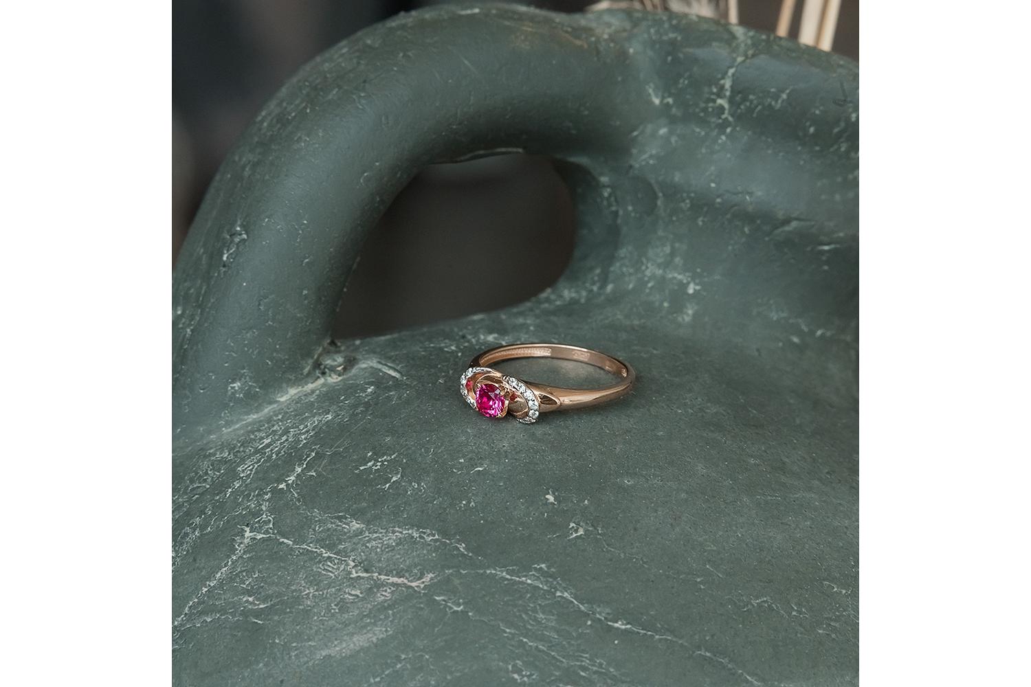 Мастера компании NEWGOLD, приложив всё свое мастерство и искусство, создали для Вас на нашем собственном производстве Кольцо из красного золота с корундом и 12 фианитами.