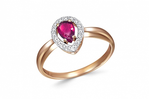 Закажите Кольцо из красного золота с корундом и 16 бриллиантами с получением в Москве через курьерскую службу доставки напрямую с нашего производственного склада завода NEWGOLD!