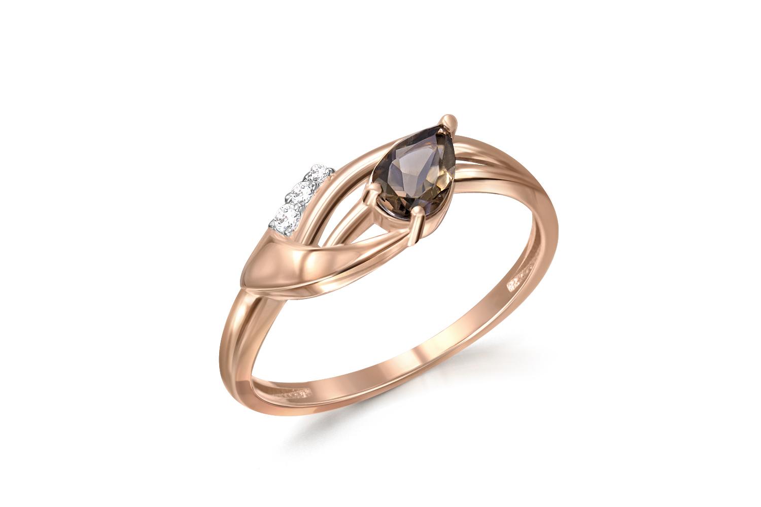 Мастера компании NEWGOLD, приложив всё свое мастерство и искусство, создали для Вас на нашем собственном производстве Кольцо из красного золота с раухтопазом и 3 фианитами.