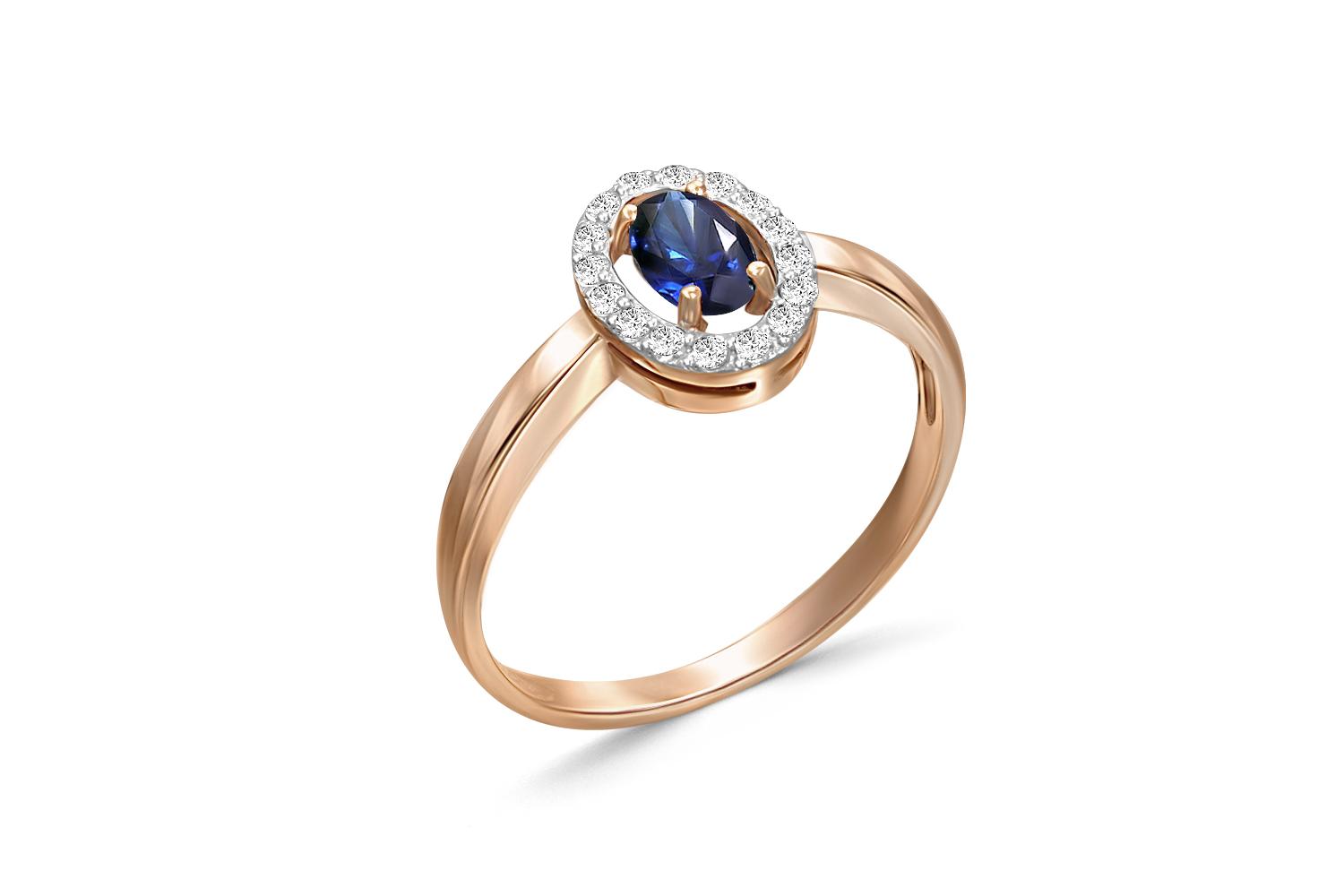 Корунд сапфир синт, количество 1 шт., огранка овал, размер 6ˣ4 ; Бриллиант, количество 16 шт., огранка Кр-17, размер 1,25 мм, цвет 2, чистота 2, вес 0,13 карат.