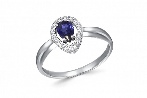 Корунд сапфир синт, количество 1 шт., огранка груша, размер 6ˣ4 ; Бриллиант, количество 16 шт., огранка Кр-17, размер 1,25 мм, цвет 2, чистота 2, вес 0,14 карат.
