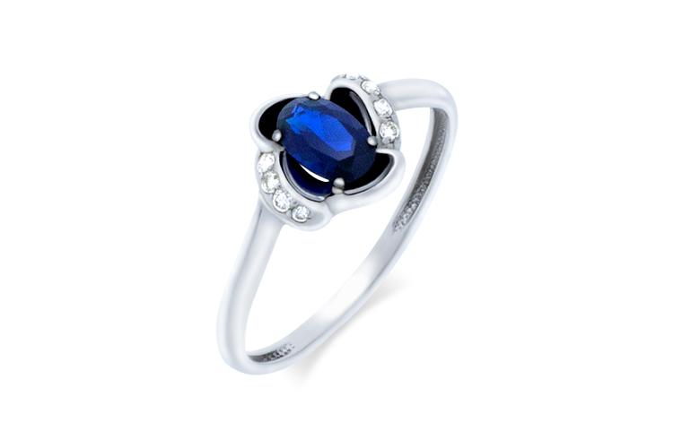 Корунд сапфир синт, количество 1 шт., огранка овал, размер 6ˣ4 ; Бриллиант, количество 6 шт., огранка Кр-57, размер 1,25 мм, цвет 4, чистота 5 ; Бриллиант, количество 2 шт., огранка Кр-57, размер 1,05 мм, цвет 4, чистота 5