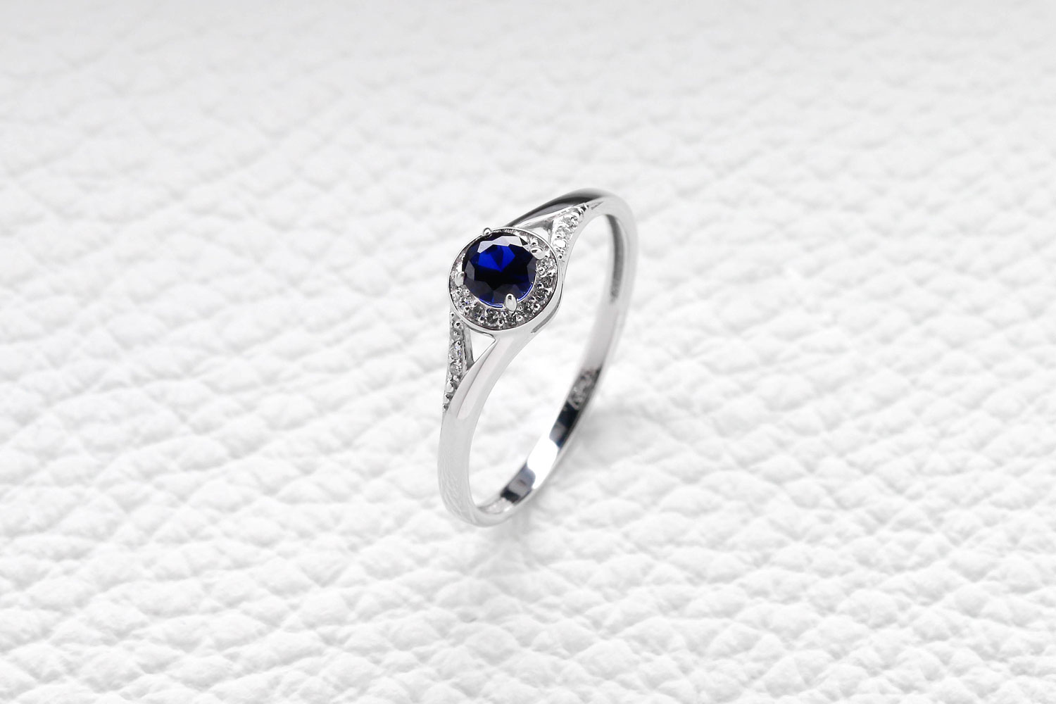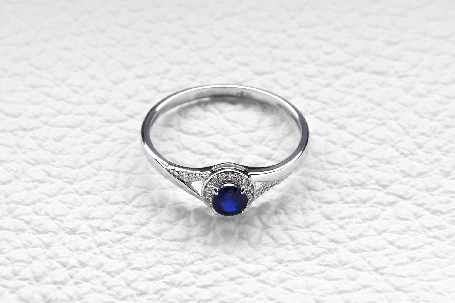 Корунд сапфир синт, количество 1 шт., огранка круг, размер 4 мм ; Бриллиант, количество 21 шт., огранка Кр-17, размер 0,8 мм, цвет 2, чистота 2