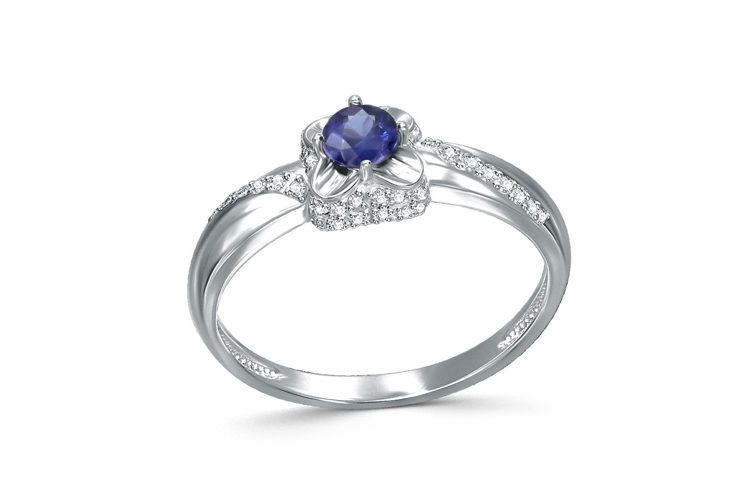 Корунд сапфир синт, количество 1 шт., огранка круг, размер 4 мм ; Бриллиант, количество 46 шт., огранка Кр-17, размер 0,9 мм, цвет 2, чистота 2