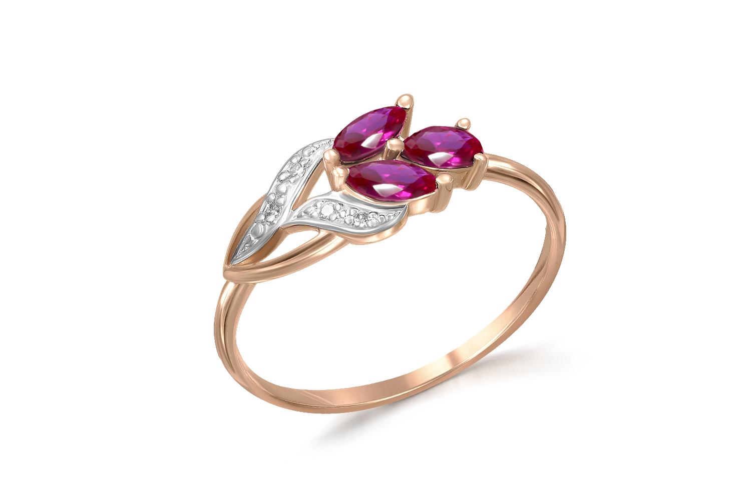 Корунд рубин синт, количество 1 шт., огранка груша, размер 5ˣ3 ; Корунд рубин синт, количество 2 шт., огранка маркиз, размер 5ˣ2,5 ; Бриллиант, количество 4 шт., огранка Кр-57, размер 1 мм, цвет 4, чистота 5