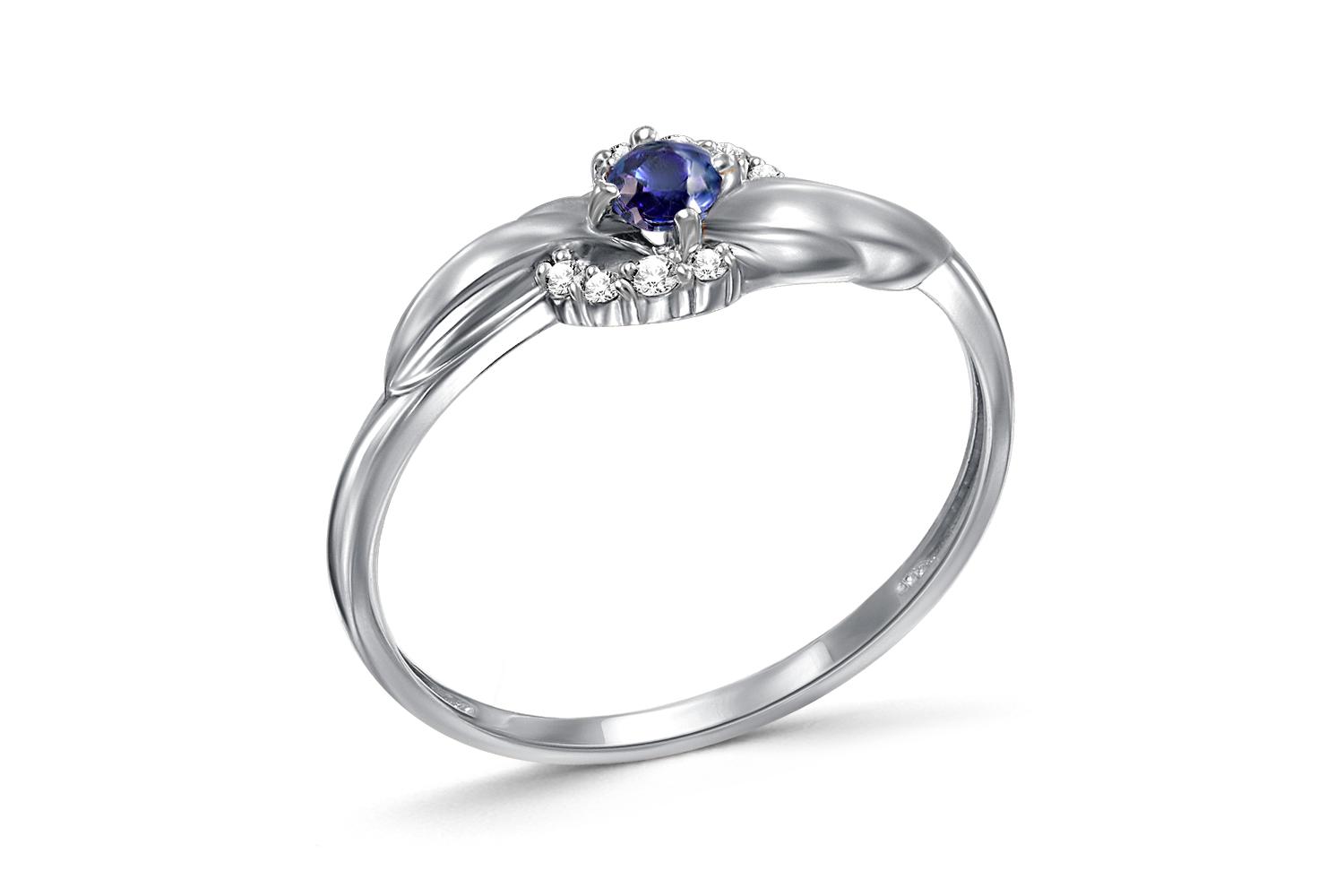 Корунд сапфир синт, количество 1 шт., огранка круг, размер 3 мм ; Бриллиант, количество 2 шт., огранка Кр-57, размер 1,25 мм, цвет 4, чистота 5 ; Бриллиант, количество 6 шт., огранка Кр-17, размер 1 мм, цвет 2, чистота 2