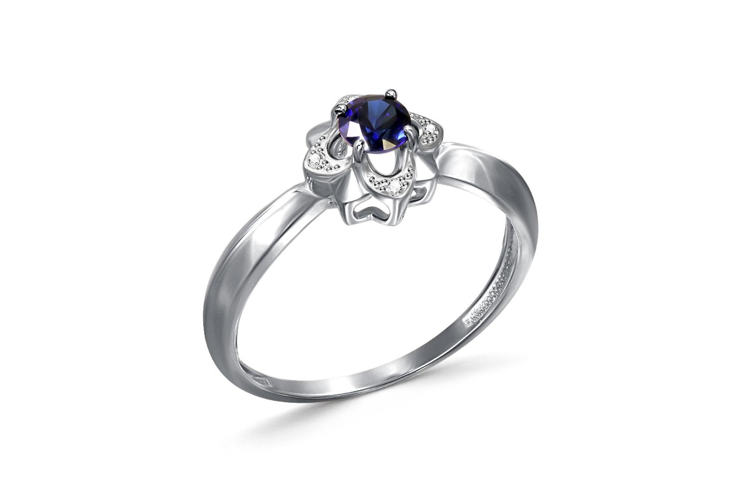Корунд сапфир синт, количество 1 шт., огранка круг, размер 4 мм ; Бриллиант, количество 4 шт., огранка Кр-17, размер 1 мм, цвет 2, чистота 2