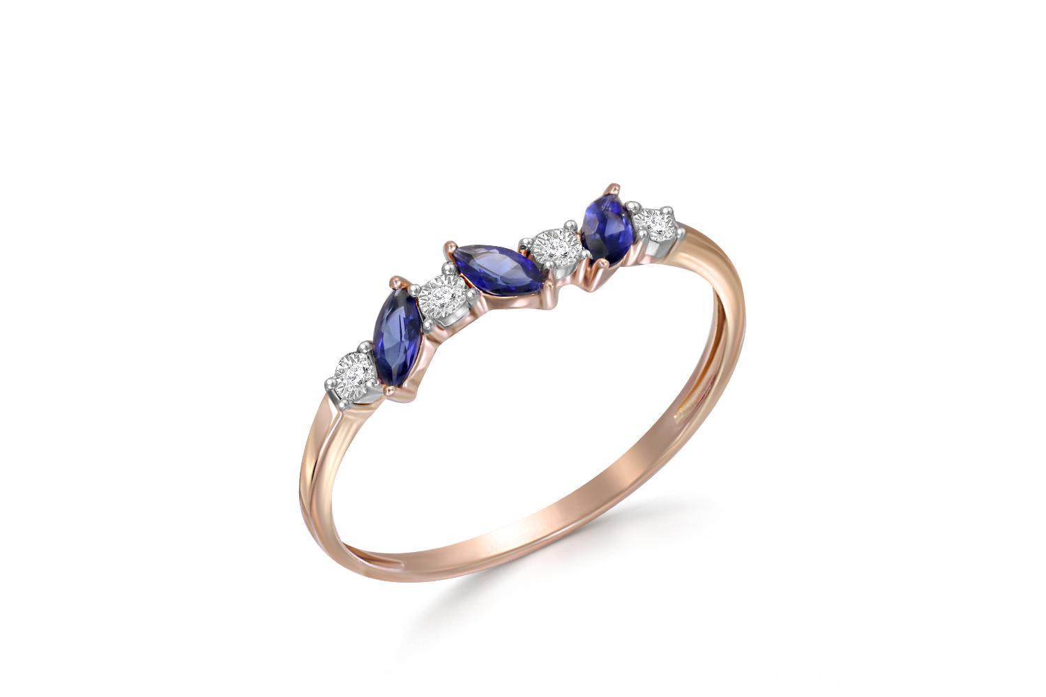 Корунд сапфир синт, количество 3 шт., огранка маркиз, размер 4ˣ2 ; Бриллиант, количество 4 шт., огранка Кр-17, размер 1 мм, цвет 2, чистота 2, вес 0,019 карат.