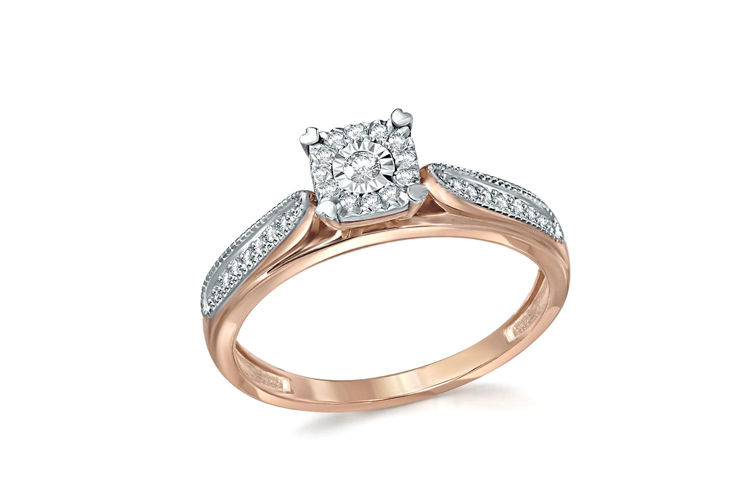 Мастера компании NEWGOLD, приложив всё свое мастерство и искусство, создали для Вас на нашем собственном производстве Кольцо из красного золота с 27 бриллиантами.