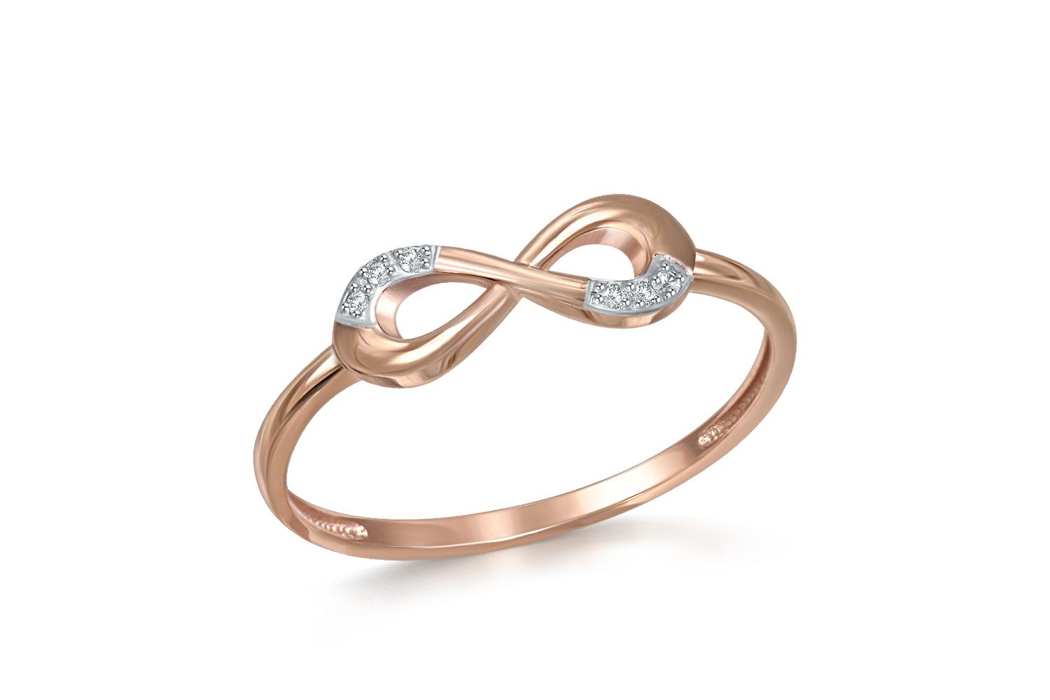 Изящное кольцо "Бесконечность" - воплощение элегантности и символизма в ювелирном искусстве. Выполненное из розового золота, оно переливается нежными оттенками теплого металла, создавая впечатление легкости и воздушности.