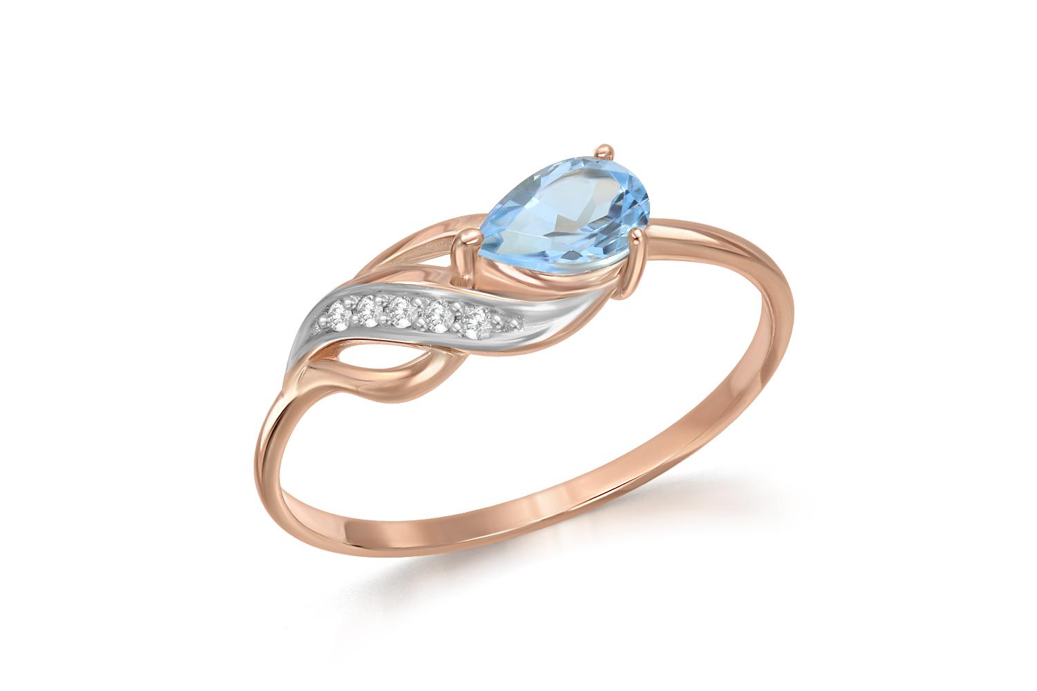 Мастера компании NEWGOLD, приложив всё свое мастерство и искусство, создали для Вас на нашем собственном производстве Кольцо из красного золота с топазом sky и 5 фианитами.