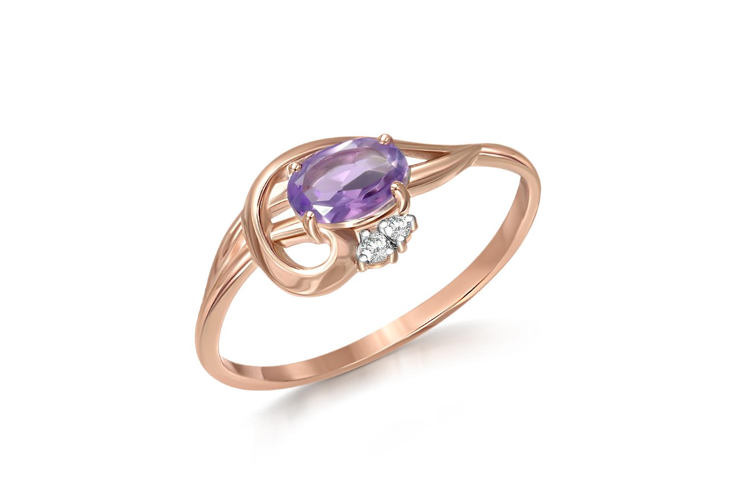 Мастера компании NEWGOLD, приложив всё свое мастерство и искусство, создали для Вас на нашем собственном производстве Кольцо из красного золота с аметистом и 2 фианитами.