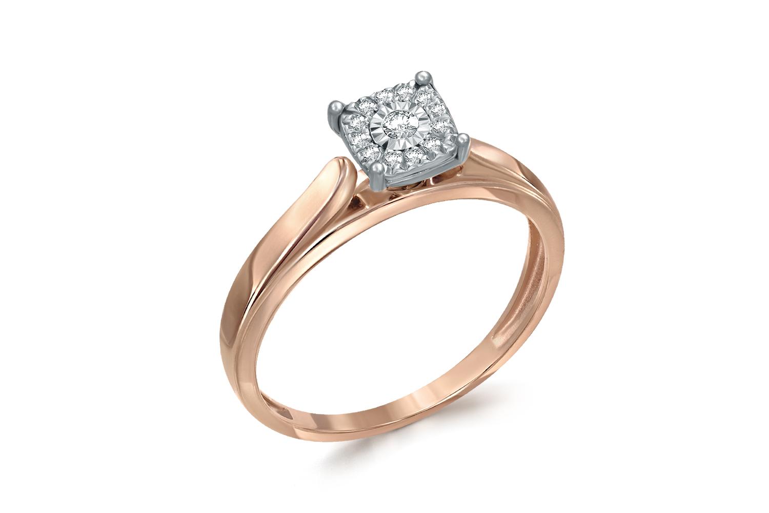 Коллекция: Synergy. Металл: Золото, цвет: Красный/Белый , проба: 585. Вставки: Бриллиант, количество 1 шт. , огранка Кр-57, размер 2 мм, цвет 4, чистота 5 ; Бриллиант, количество 12 шт.