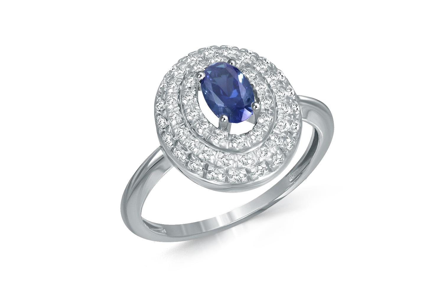 Корунд сапфир, количество 1 шт., огранка овал, размер 6ˣ4 ; Бриллиант, количество 55 шт., огранка Кр-57, размер 1 мм, цвет 4, чистота 5