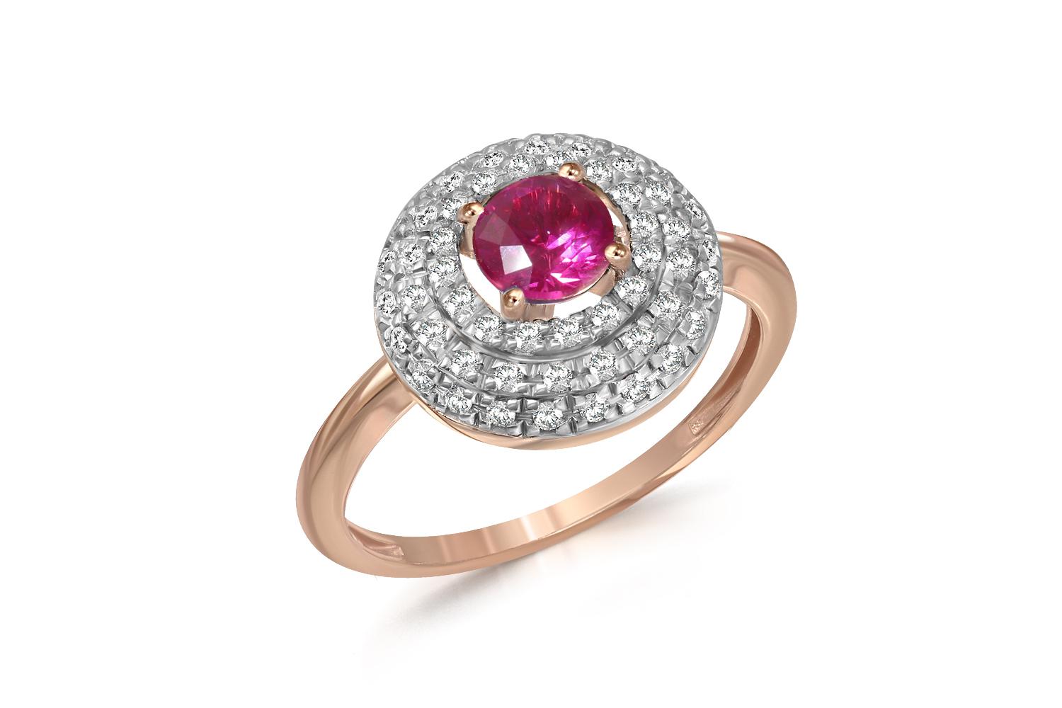Мастера компании NEWGOLD, приложив всё свое мастерство и искусство, создали для Вас на нашем собственном производстве Кольцо из красного золота с корундом и 56 бриллиантами.