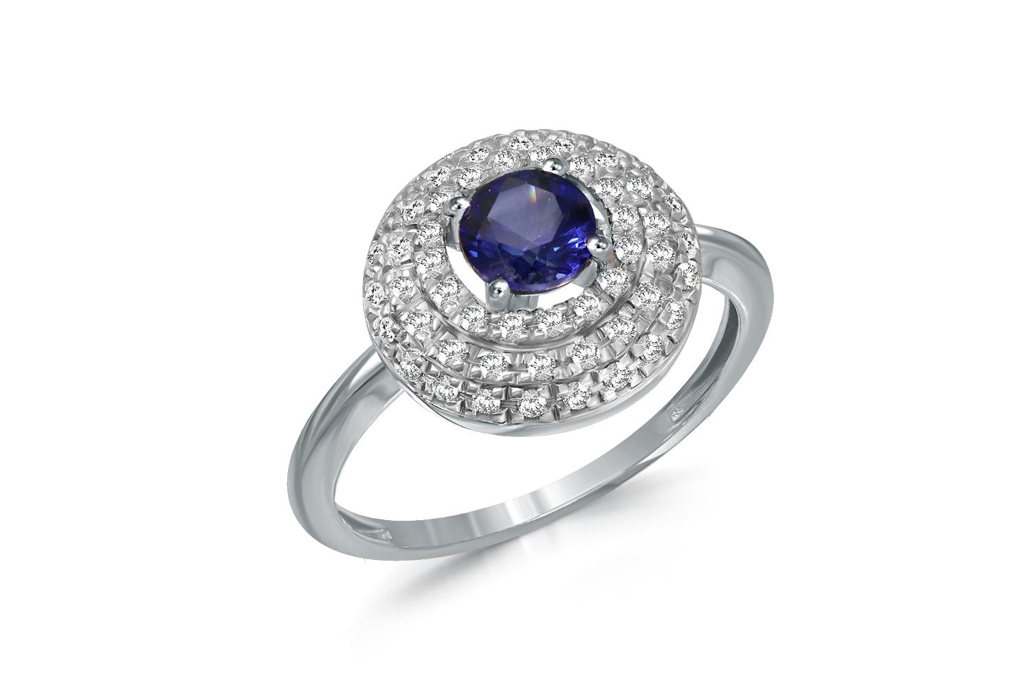 Корунд сапфир, количество 1 шт., огранка круг, размер 5 мм ; Бриллиант, количество 56 шт., огранка Кр-57, размер 1 мм, цвет 4, чистота 5