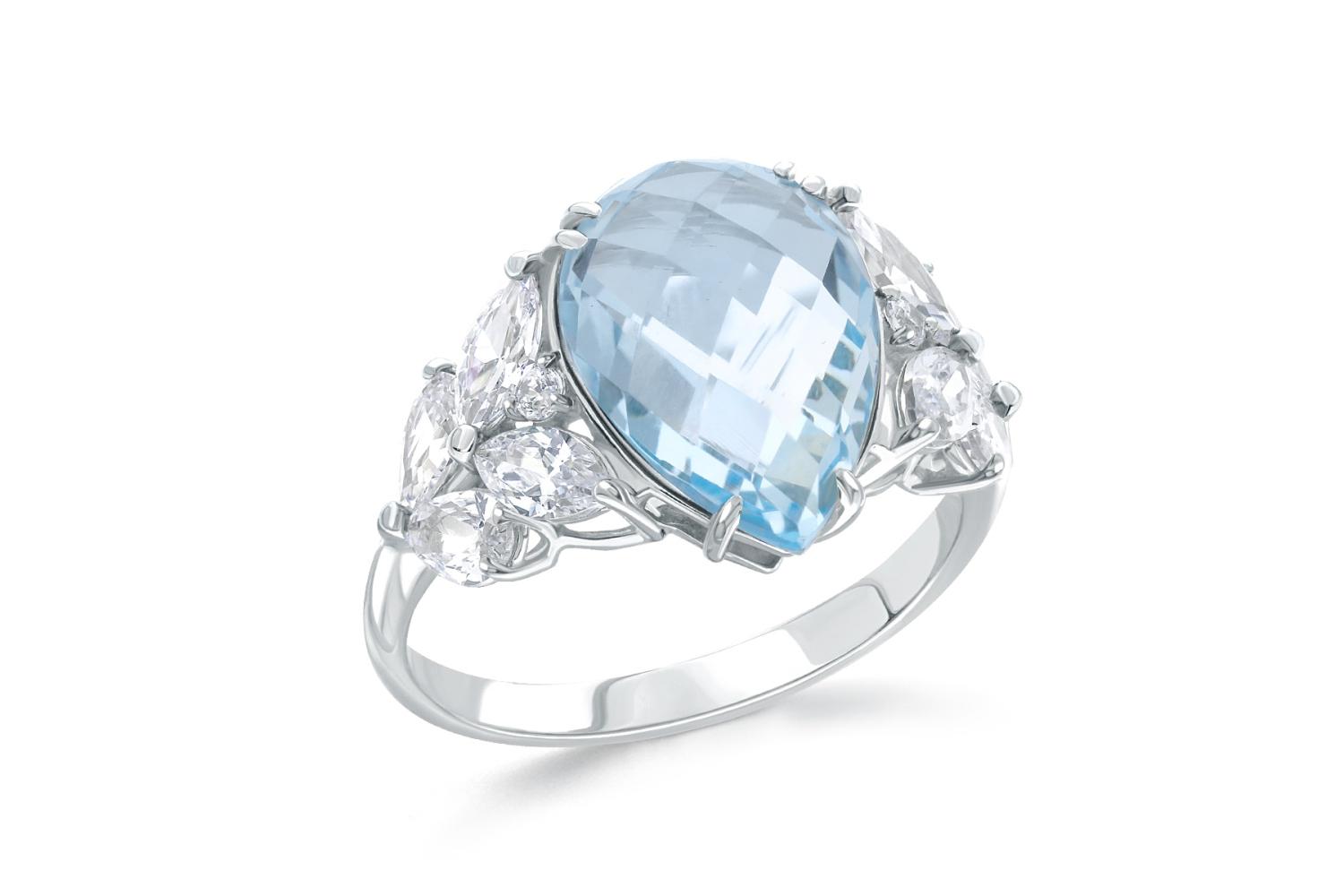 Закажите Кольцо из белого золота с топазом sky и 10 фианитами с получением в Москве через курьерскую службу доставки напрямую с нашего производственного склада завода NEWGOLD!