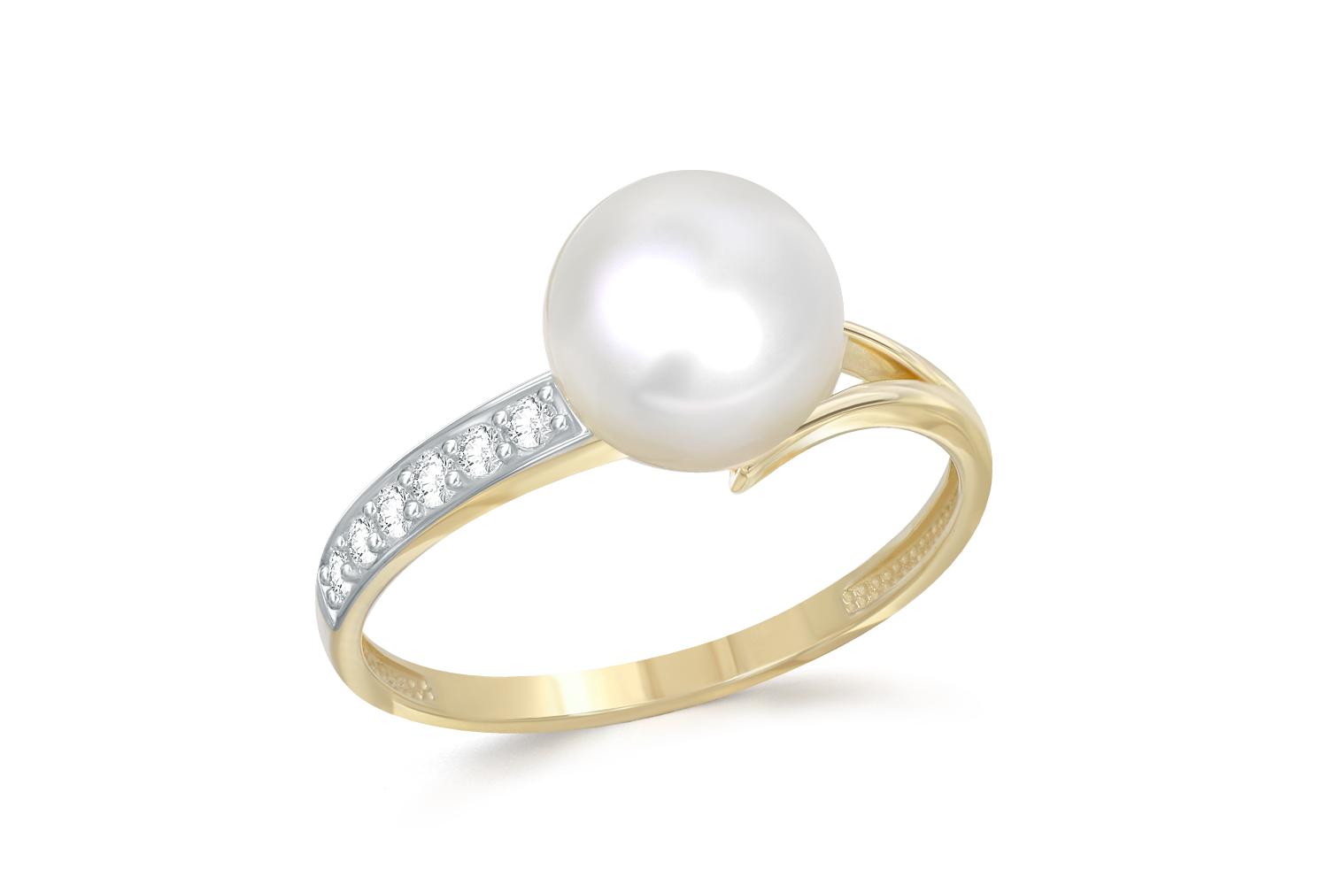 Закажите Кольцо из жёлтого золота с жемчугом и 6 фианитами с получением в Москве через курьерскую службу доставки напрямую с нашего производственного склада завода NEWGOLD!