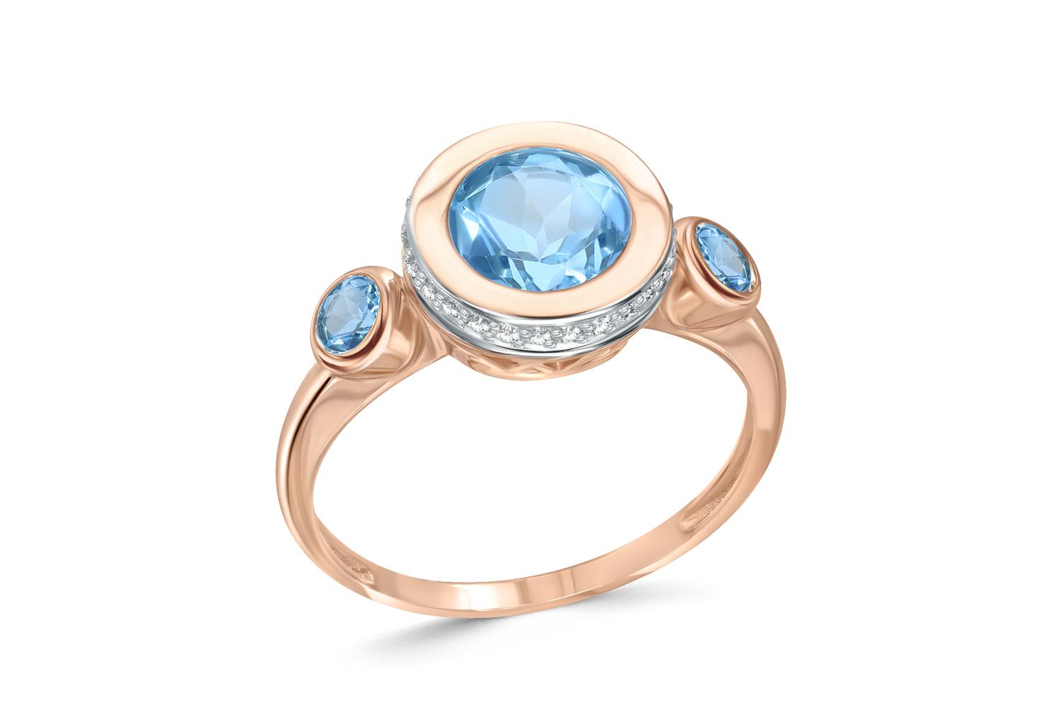 Закажите Кольцо из красного золота с 3 топазами swiss и 26 фианитами с получением в Москве через курьерскую службу доставки напрямую с нашего производственного склада завода NEWGOLD!