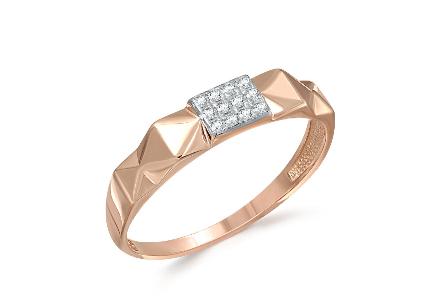 Представляем вам стильное и изящное золотое женское кольцо с 12 сверкающими фианитами, выполненное из высококачественного красного золота 585 пробы. Это универсальное украшение, которое подойдет как для повседневной носки, так и для особых случаев. Кольцо золотое имеет простой, но элегантный геометрический дизайн, который не оставит вас равнодушным. Камни имеют высококачественную огранку, благодаря которой они ярко сверкают на свету, добавляя вашему образу изысканности и шарма.
