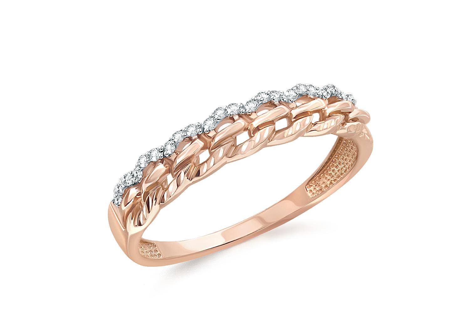 Кольцо с 24 фианитами, выполненное из красного золота 585 пробы. Это стильное и яркое украшение станет прекрасным дополнением к вашему образу и подчеркнет ваш неповторимый стиль. Кольцо имеет оригинальный узор, который привлекает внимание и добавляет ему изысканности. Главная особенность этого кольца - его потрясающий дизайн.